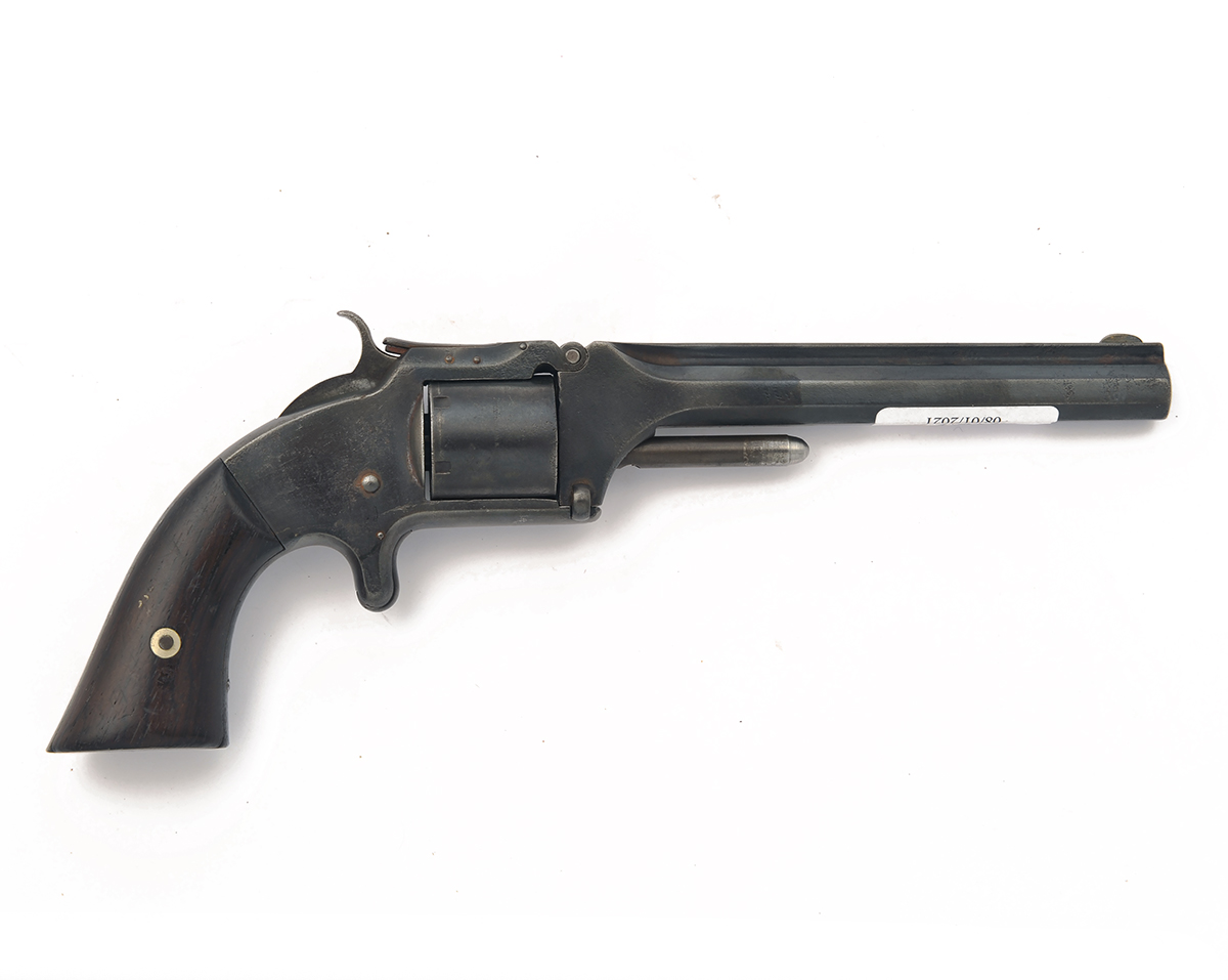 A .32 RIMFIRE SIX-SHOT REVOLVER SIGNED SMITH & WESSON, MODEL 'No2 OLD MODEL ARMY', serial no. 9333 circa 1863, with reblued 6in. barrel, plain cylinder, hinged frame and smooth flared rosewood grips