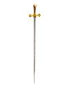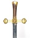 A RARE SWORD FOR THE 'KNIGHTS OF WINDSOR' SIGNED PROSSER, LONDON, specifically the Coldstream Guards detachment, pre 1860, with double edged straight 30in. blade etched with the makers details at forte, gilded and engraved straight brass cross-guard with tri-lobed quillions and a central Coldstream Guards device and plain reverse taper hilt (gilding worn, lacking scabbard)