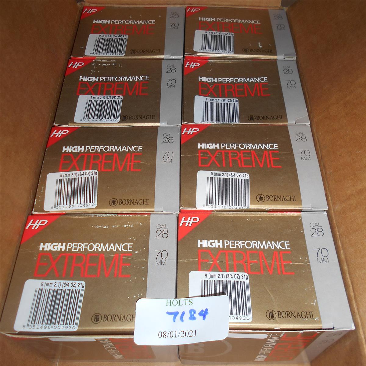 200 BORNAGHI 28 BORE 70mm, 3/4 oz, 9 SHOT, 1300fps. Please be advised that ammunition, primers, primed cases, blanks and percussion caps cannot be sent to you by post or carrier. If you wish you can book a collection at one of our regional valuation days or collect from our offices at PE31 6HA in Norfolk