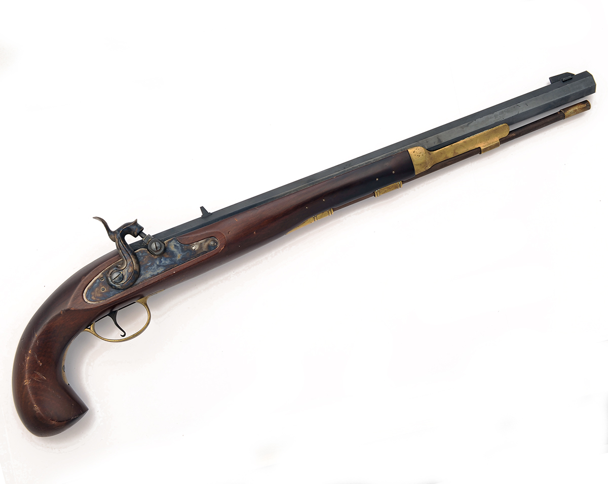 A REPRODUCTION .45 PERCUSSION PISTOL SIGNED PEDERSOLI, MODEL BOUNTY-HUNTER, serial no. 88292,