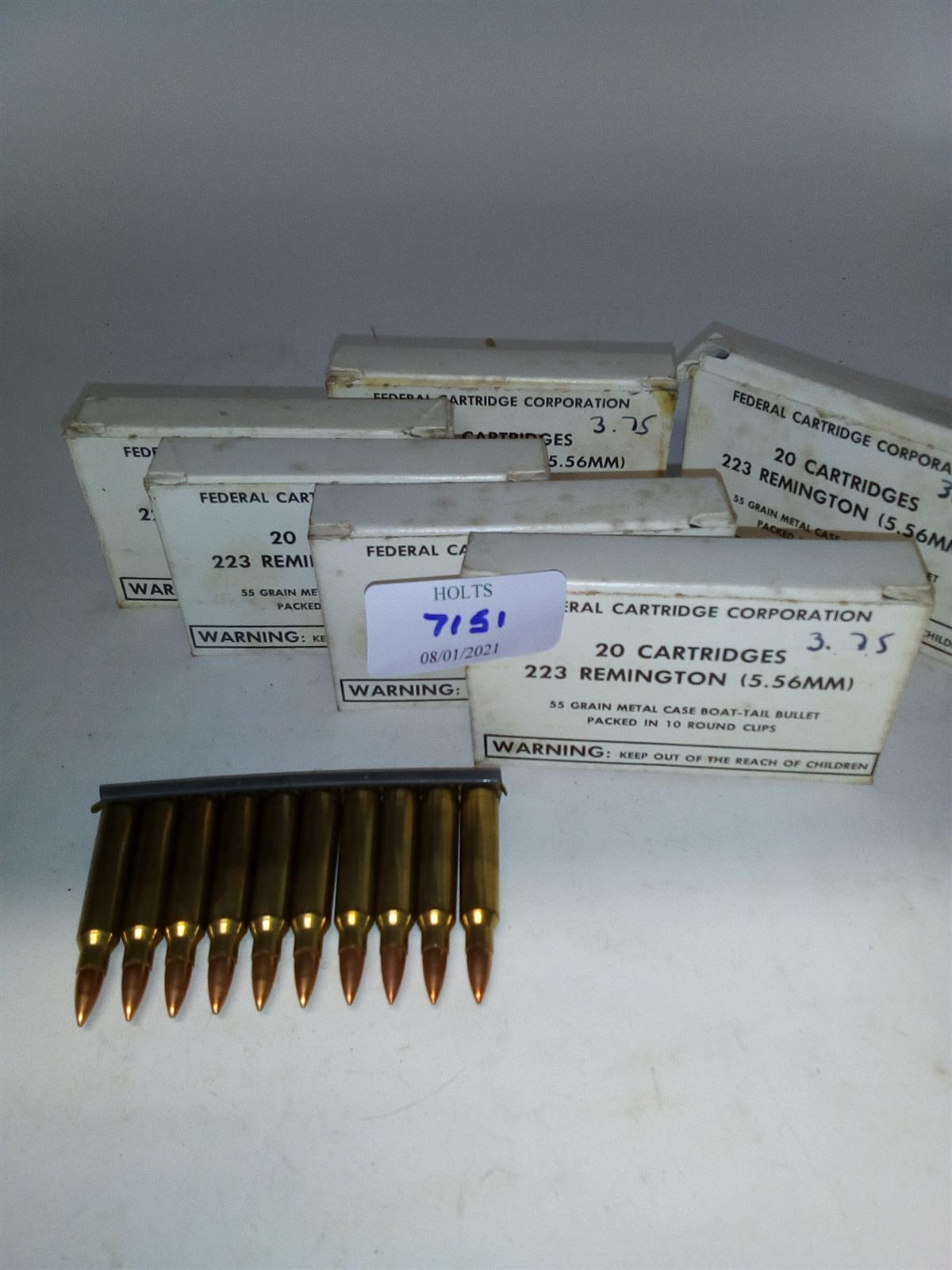 120 ROUNDS 5.56 (.223 REM) AMMUNITION BY FEDERAL, comprising of: 6 issue cartons containing 20 rounds in 10 round clips of 55 grn fmjbt.