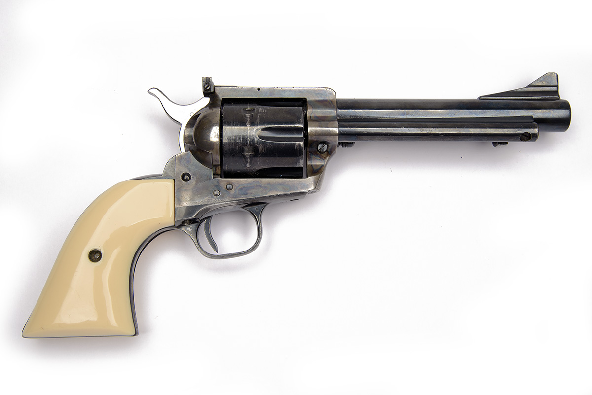 A .45 (L/C) SINGLE ACTION REVOLVER SIGNED COLT, MODEL 'NEW FRONTIER', serial no.  3351NF, for 1962, with blued 5 1/2in. barrel, ramp fore-sight, adjustable rear-sight, blued fluted cylinder, colour-hardened frame and replacement ivorine grips