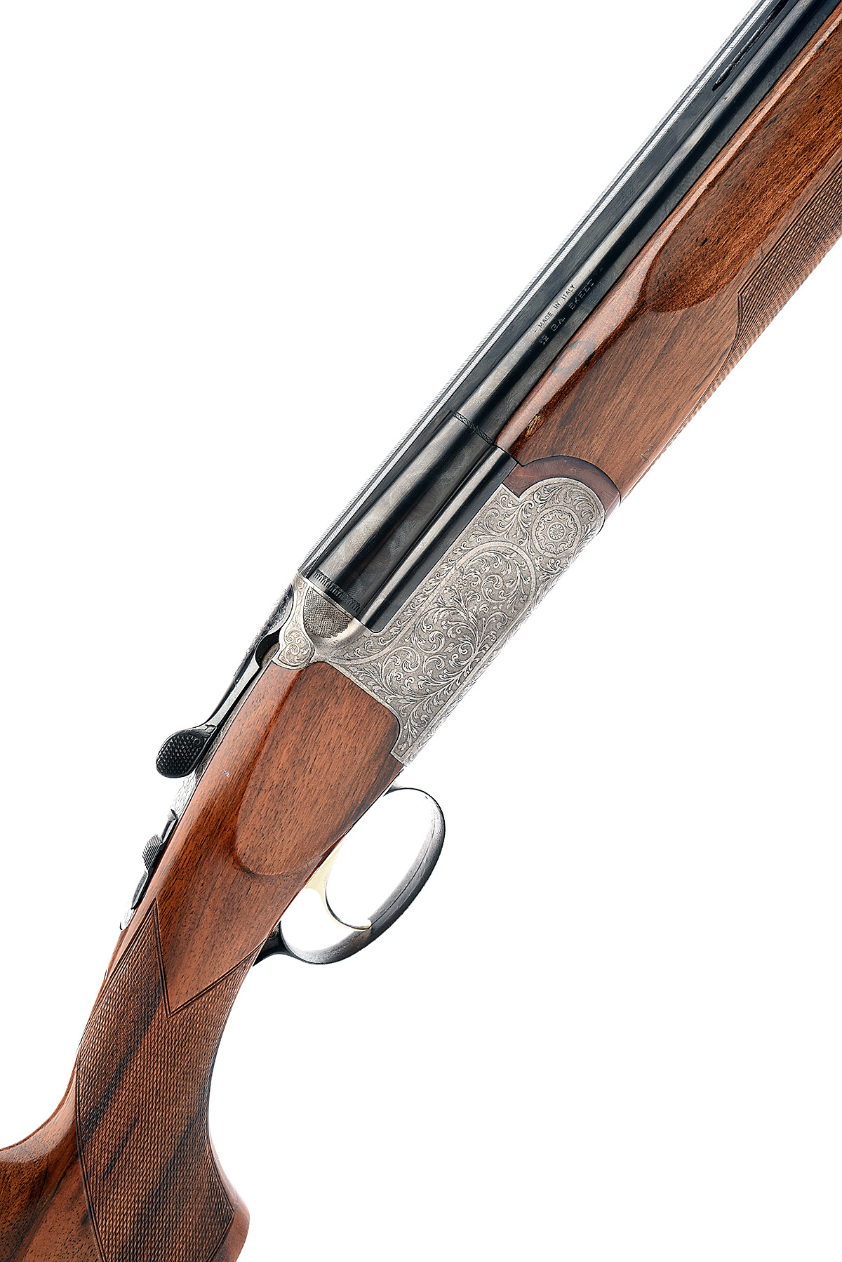 FIAS (FOR GOWER LTD.) 12-BORE SINGLE-TRIGGER OVER AND UNDER EJECTOR, serial no. 55826, dated 1976, 25 7/8in. nitro barrels with 12mm ventilated matt top-rib, 2 3/4in. chambers, bored approx. imp. cyl. choke, hold-open toplever, manual safety with integral barrel selector switch, bright scroll engraved action, 13 5/8in. pistolgrip stock