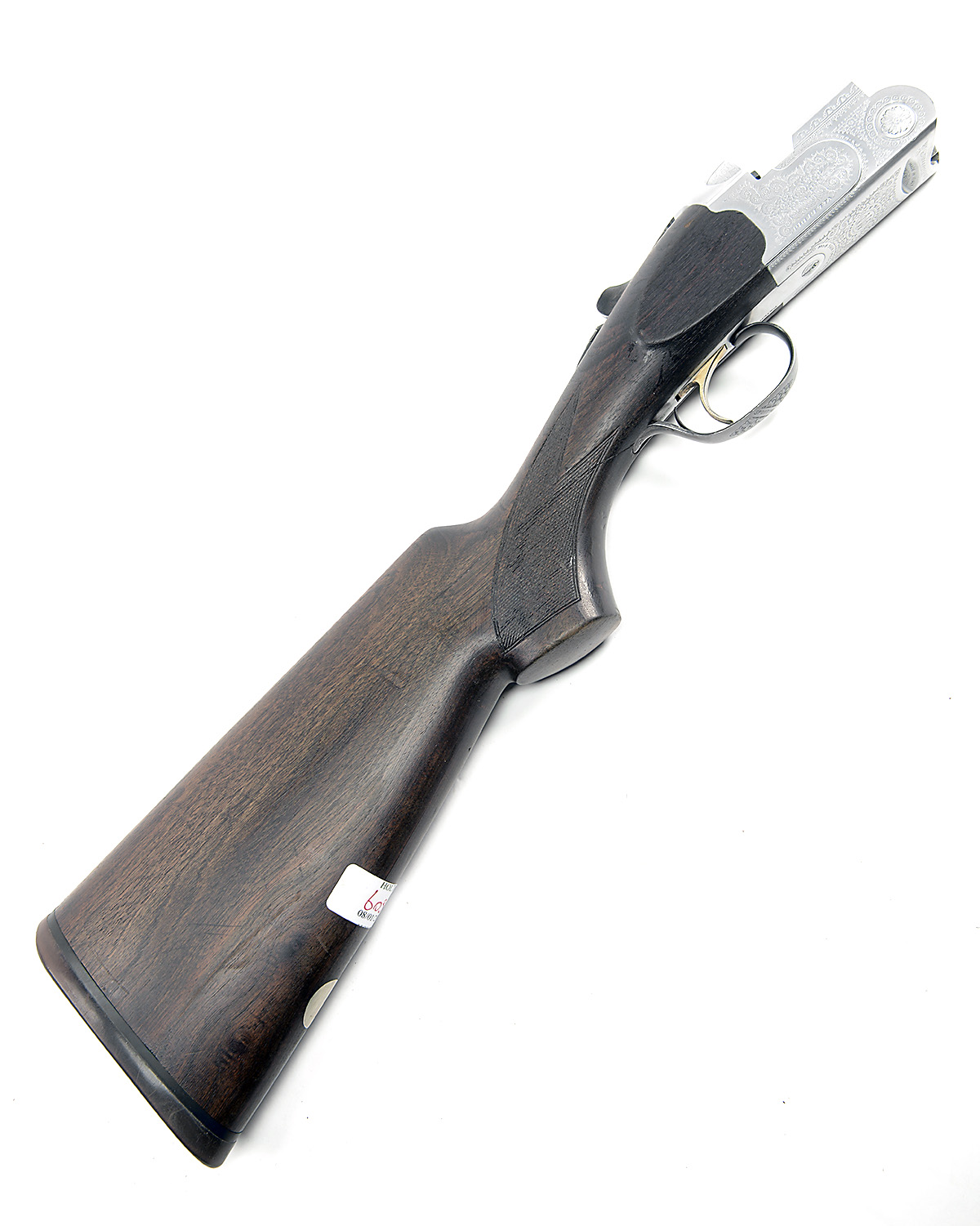 THE BROKEN STOCK AND ACTION ONLY OF A P. BERETTA 12-BORE 'S686 SPECIAL SPORTING' SINGLE-TRIGGER OVER AND UNDER EJECTOR, serial no. F32260B, Circa 1990, hold-open toplever, manual safety with integral barrel selector switch, gold-washed single trigger, bouquet and scroll engraving, brushed finish, 14 1/2in. pistolgrip stock including rubber recoil pad (broken and glued)