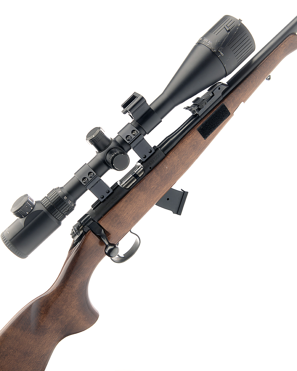 CZ .22 L.R. 'MODEL 452-2E ZKM' BOLT-MAGAZINE SPORTING RIFLE, serial no. A215778, 25 1/4in. nitro barrel, threaded for sound moderator, hooded ramp-mounted blade fore-sight, tangent rear-sight, fitted with a Richter Optik 6-24x50AO telescopic sight, manual safety, detachable magazine, pistolgrip stock, together with sound moderator