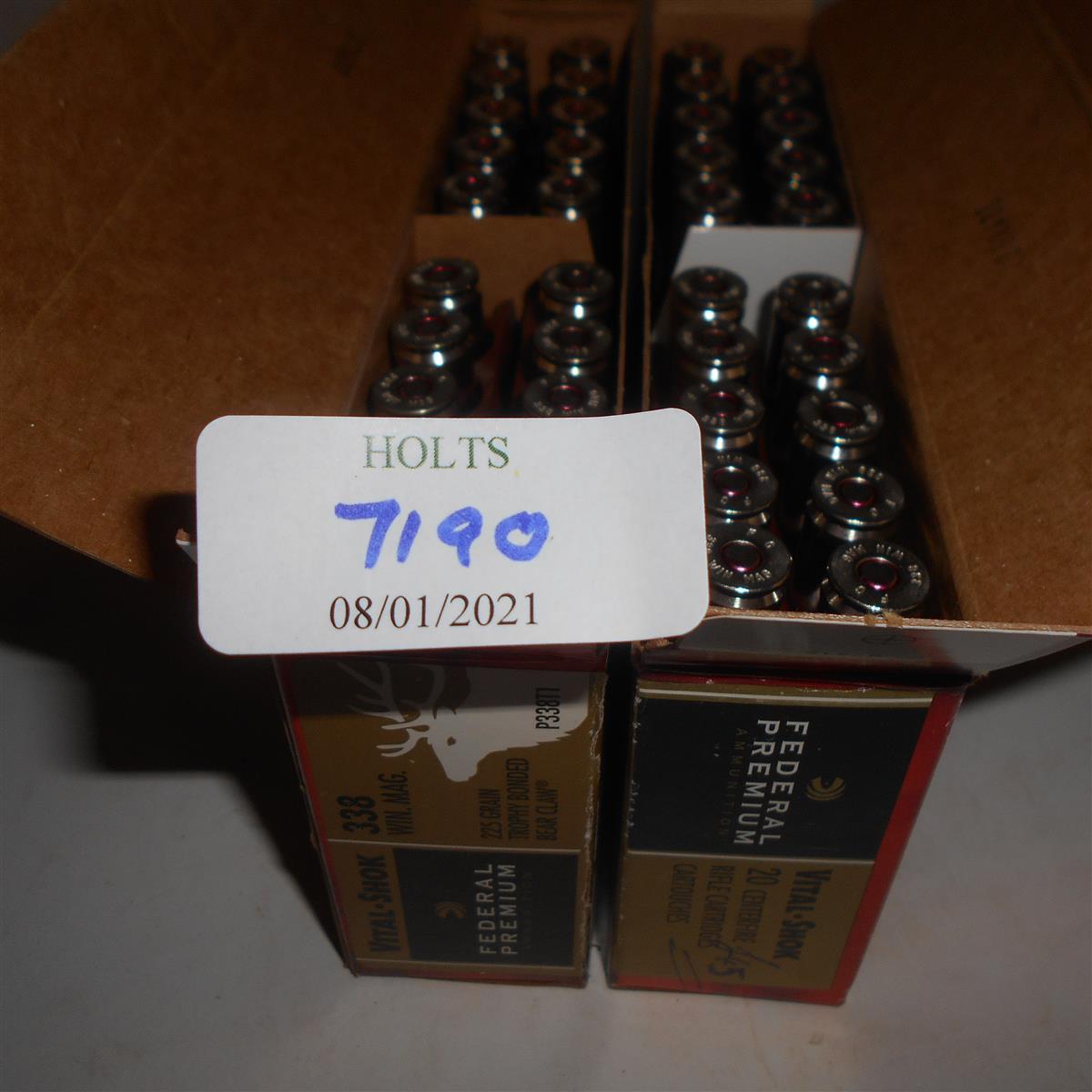 40 ROUNDS .338 WIN MAG, FEDERAL VITAL SHOK AMMUNITION, 225 grn, TROPHY BONDED BEAR CLAW # P338TI Please be advised that ammunition, primers, primed cases, blanks and percussion caps cannot be sent to you by post or carrier. If you wish you can book a collection at one of our regional valuation days or collect from our offices at PE31 6HA in Norfolk