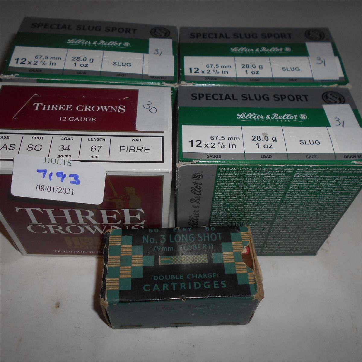 75 12 BORE SLUG, 25 SSG, 50 ELEY 9mm No3 LONG SHOT CARTRIDGES, comprising of :