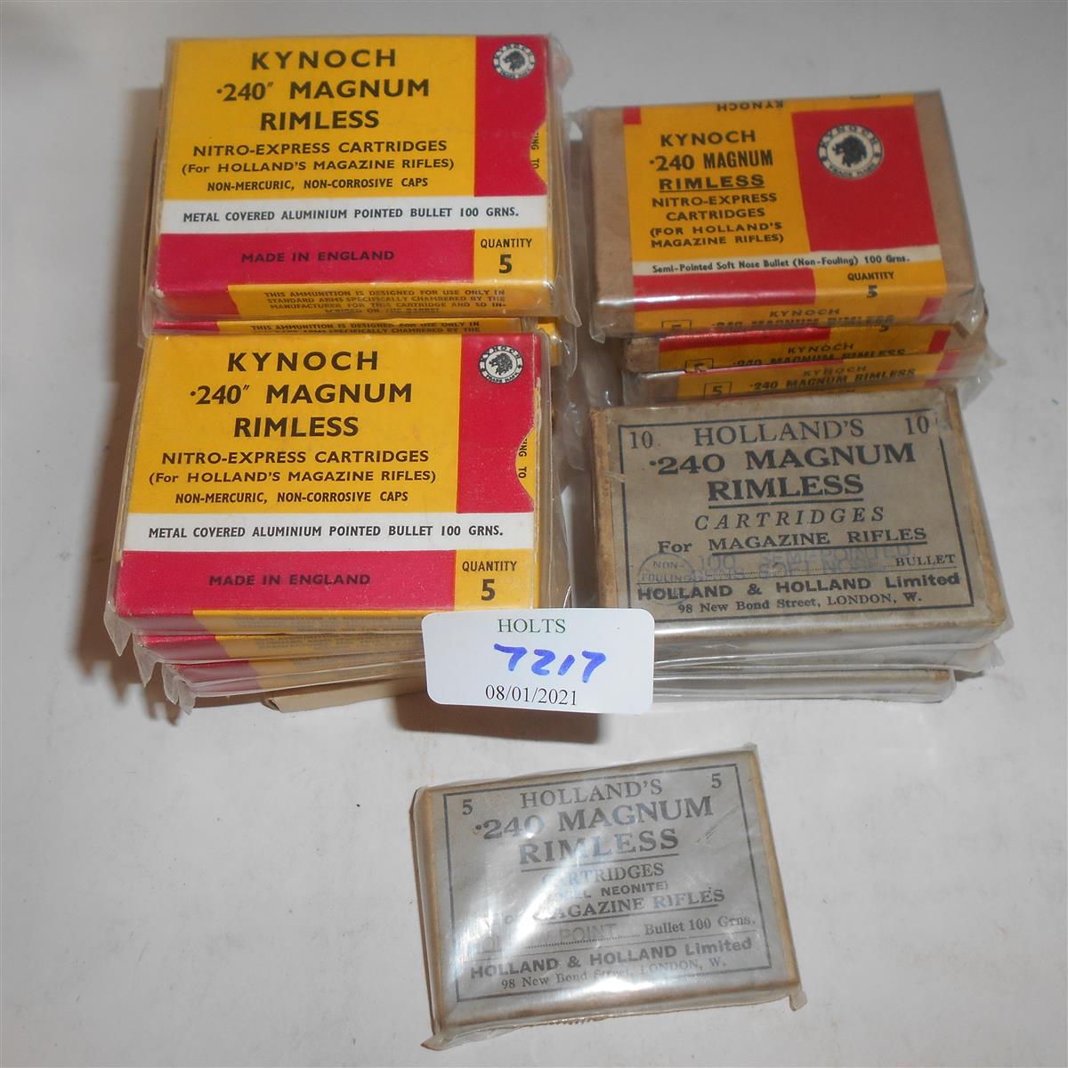140 ROUNDS .240 MAGNUM RIMLESS NE AMMUNITION BY KYNOCH FOR HOLLANDS MAGAZINE RIFLES, 100 grn. comprising of