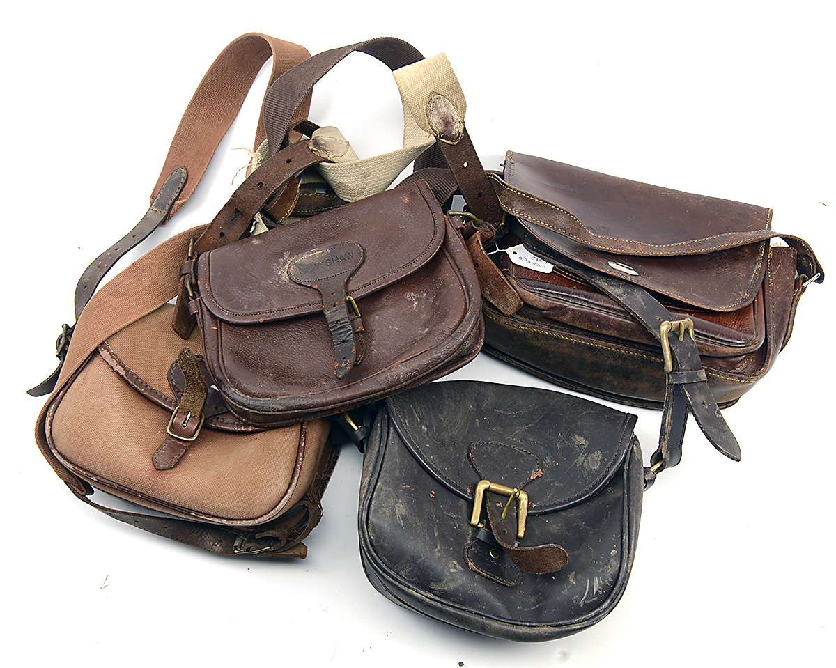 A COLLECTION OF FOUR VINTAGE LEATHER CARTRIDGE BAG,