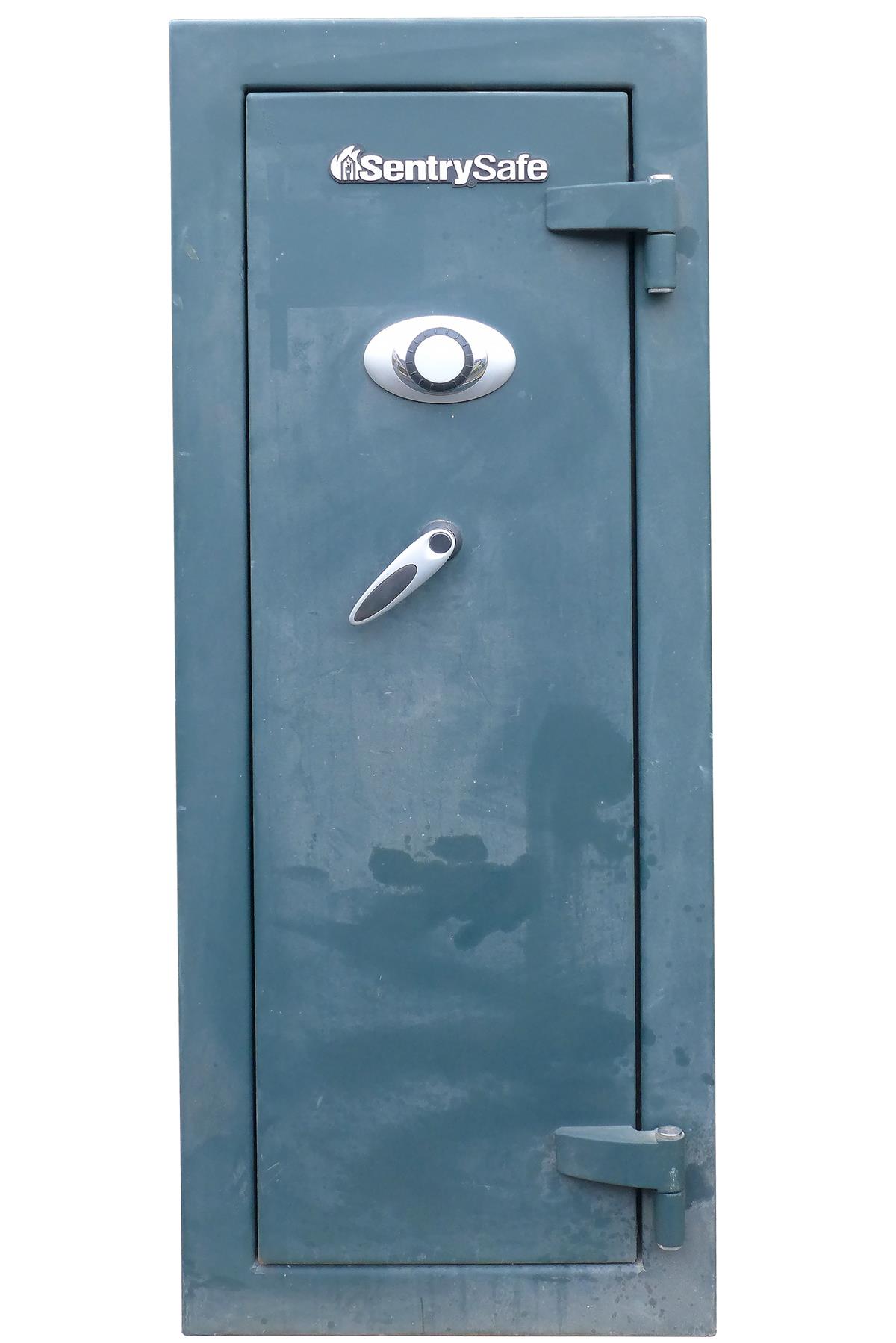A SENTRY-SAFE LARGE FOREST GREEN GUN CABINET,