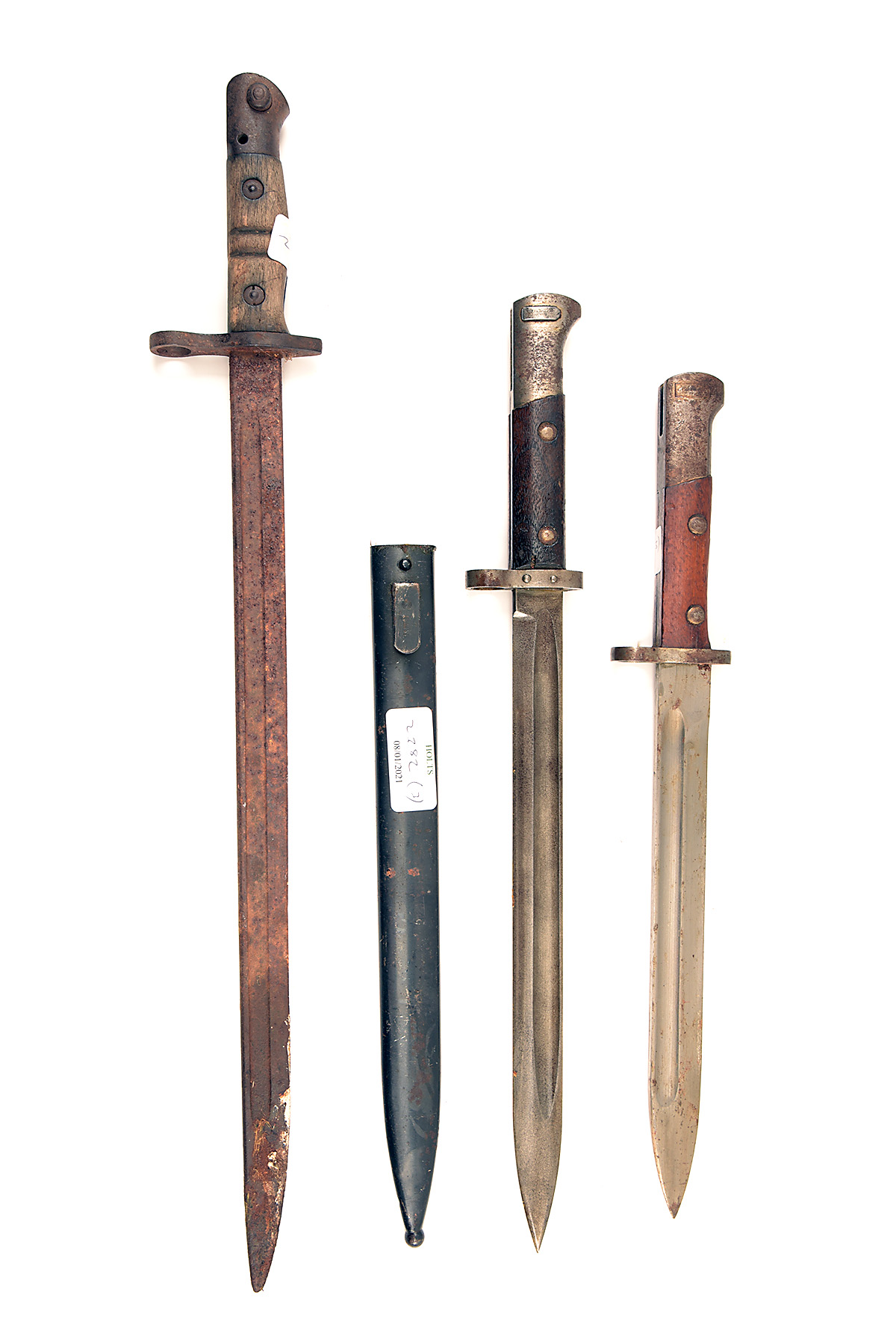 A GROUP OF THREE BAYONETS one a post-war 'long' 12in. bladed Czech Mauser VZ24 with scabbard, one a 'short' 10in. bladed Czech Mauser VZ24 without scabbard and one relic condition Remington P17