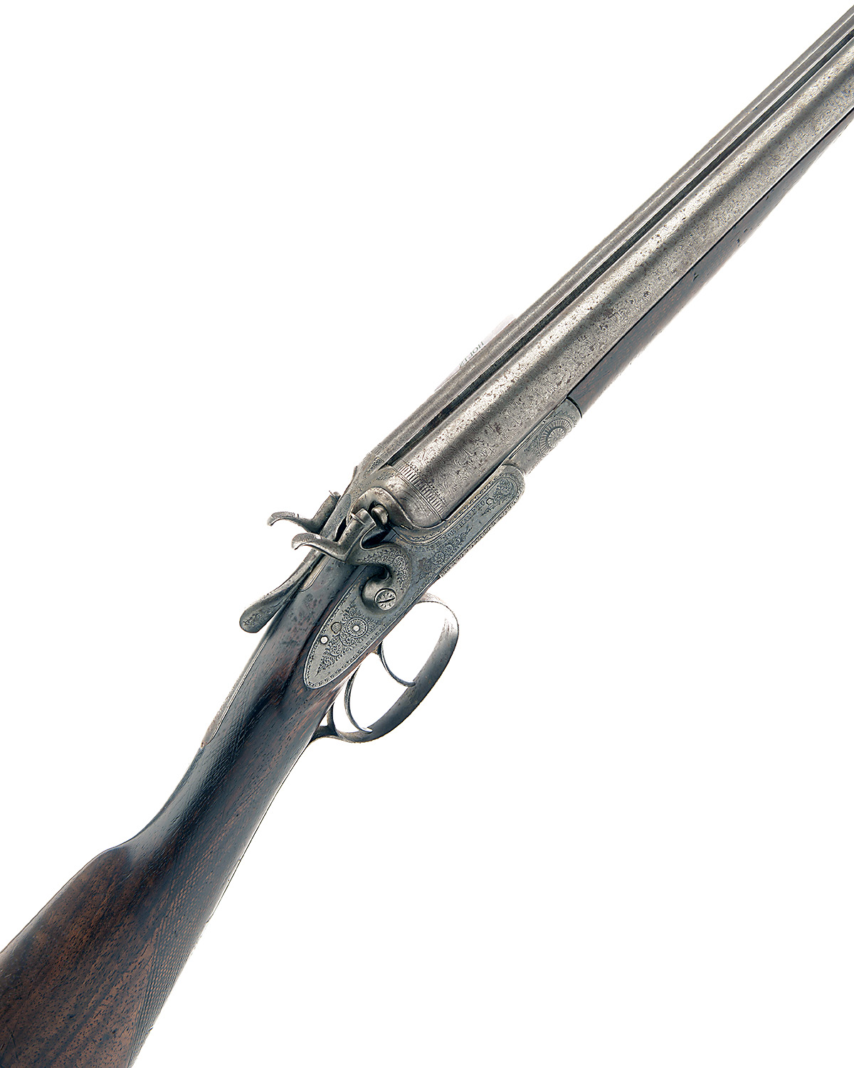 THE STOCK, ACTION AND FORE-END ONLY OF AN ENGLISH 12-BORE ROTARY-UNDERLEVER HAMMERGUN, nvsn;