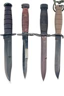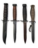 FOUR MILITARY TYPE SHEATH-KNIVES, including a US M8 in an M8A1 scabbard, a late M3 type in a hard plastic scabbard with integral webbing frog, a green Glock 'bayonet with scabbard and a USMC bowie signed Kabar with leather scabbard