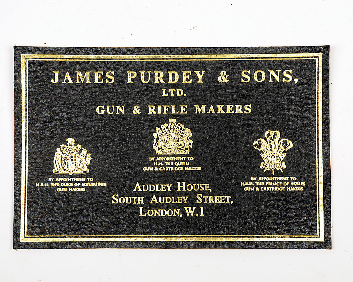 A JAMES PURDEY & SONS LEATHER GOLD-TOOLED GUNCASE TRADE LABEL,