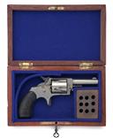 A CASED .32 RIMFIRE POCKET REVOLVER SIGNED FOREHAND & WADSWORTH, MODEL 'RUSSIAN .32', serial no. 11785, circa 1885, with nickel-plated round 2 1/2in. barrel, fluted plated cylinder, plain solid frame with spur trigger and chequered gutta-percha grips, in a later fitted wood box line in blue baize