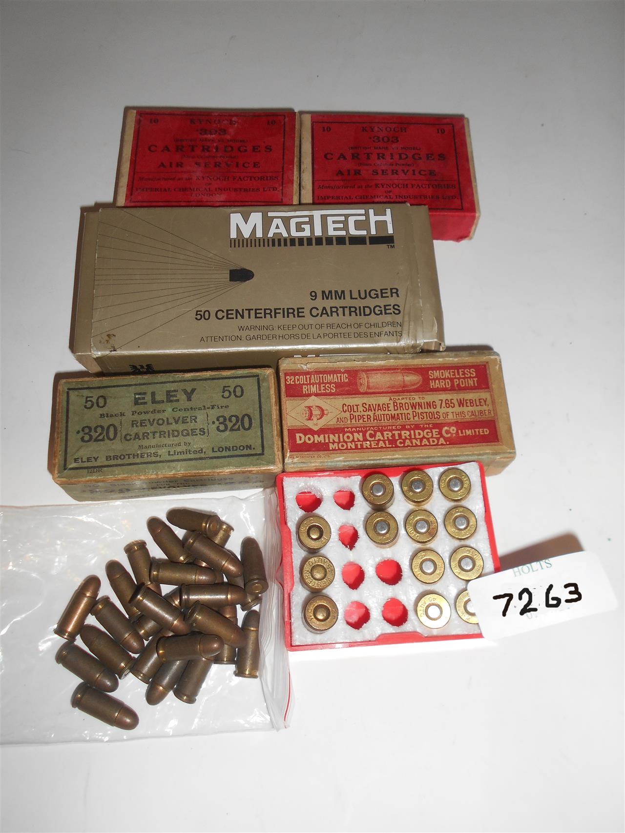 19 .303 dated 1955 and 1957 different heads but in two Kynoch Air Service 10 round cartons some slightly corroded,