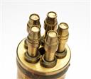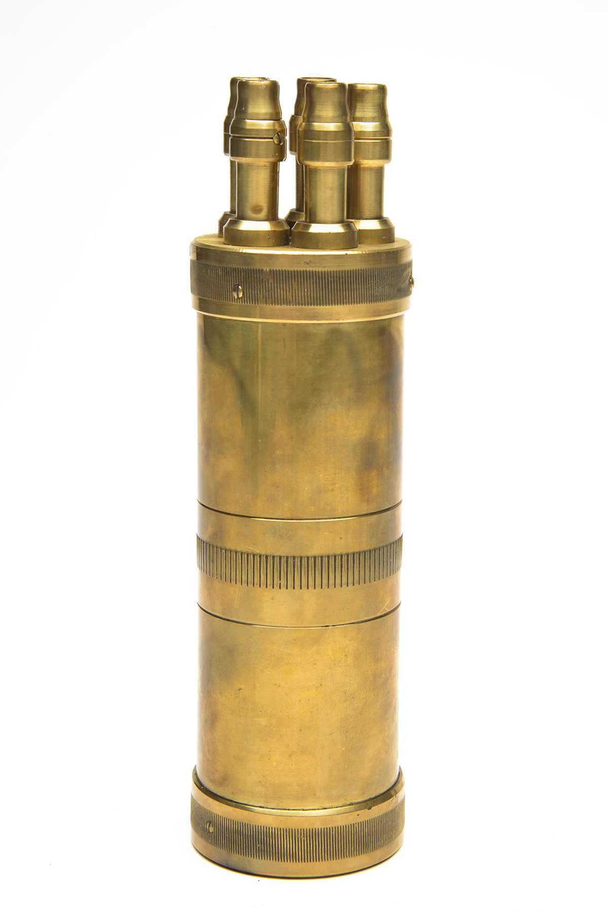 A REPRODUCTION BRASS POWDER CHARGER FOR THE COLT PATERSON REVOLVER with five individually sprung nozzles, unmarked, in good, used condition