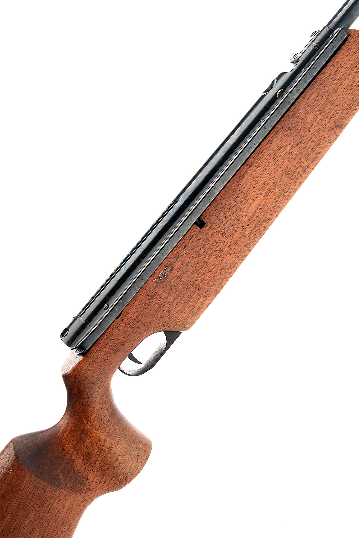 A .177 SIDE-LEVER AIR-RIFLE SIGNED WEBLEY & SCOTT, MODEL 'OSPREY SUPERTARGET' serial no. 27638, with 19in. bull-barrel, tap loading breech, blued air-chamber railed for a sight (lacking) and target style half-stock, generally collector's external condition bar rear-sight, 43in. overall