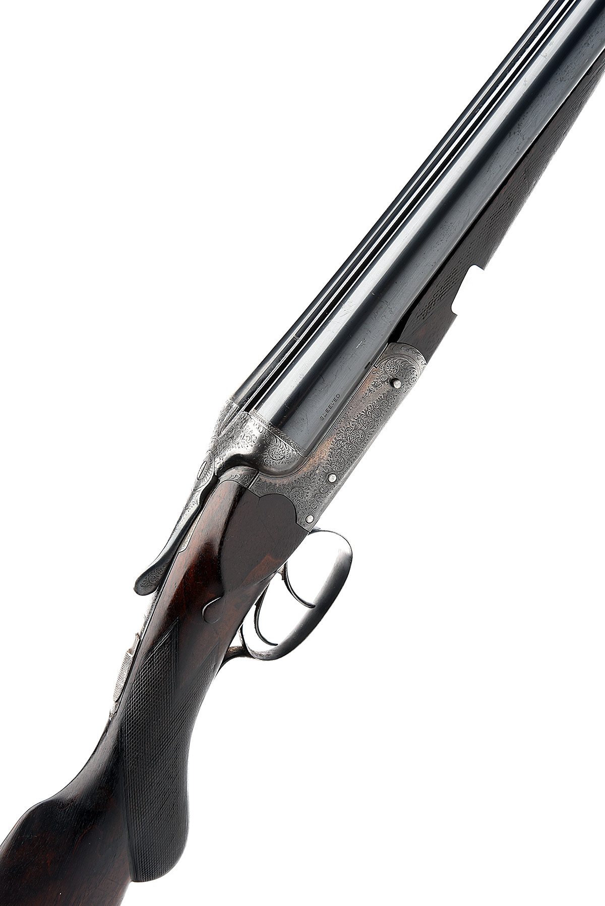 T. WILD 12-BORE BOXLOCK NON-EJECTOR, serial no. 2934, circa 1904, 28in. sleeved nitro barrels (in 1964), 2 1/2in. chambers, bored approx. 3/4 and full choke, scoop-back treble-grip action, automatic safety with gold-inlaid 'SAFE' detail, border and acanthus scroll engraving, 14 1/4in. semi-pistolgrip stock including buttplate, in a wooden box