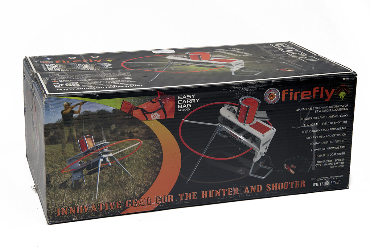 AN UNUSED UNOPENED FIREFLY AUTOMATIC CLAY PIGEON TRAP MACHINE,