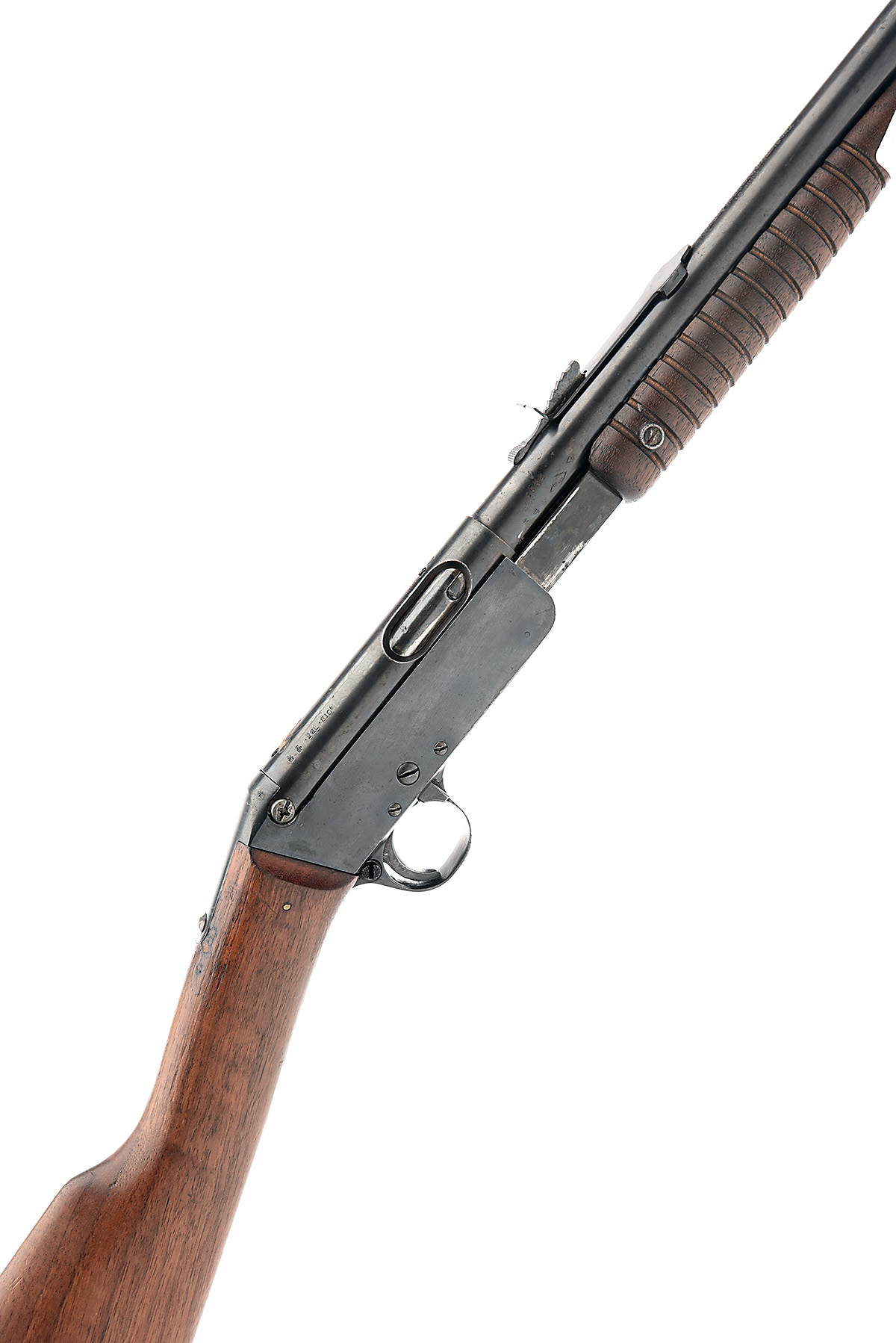B.S.A. .22 L.R. PUMP-ACTION REPEATING SPORTING RIFLE, serial no. 4564, 21 1/2in. nitro barrel, bead fore-sight, leaf rear-sight, manual safety, 3/4 length tubular magazine, straight stock