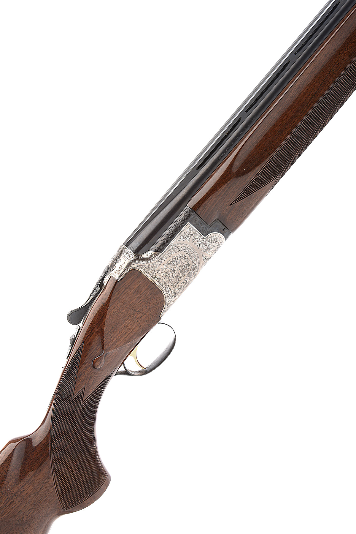 B.C. MIROKU 12-BORE SINGLE-TRIGGER OVER AND UNDER EJECTOR, serial no. 599444, circa 1974, 30in. nitro reproved barrels with 15mm ventilated matt top-rib with intermediate bead sight, 2 3/4in. chambers, bored approx. 3/4 and full choke, hold-open toplever, manual safety with integral barrel selector switch, border and scroll engraving, 14 1/2in. pistolgrip stock with raised monte carlo comb and including 7/8in. rubber recoil pad, weight 8lb. 4oz.