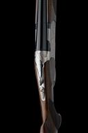 dated 2004, 28in. nitro barrels with 6mm ventilated matt top-rib, 3in. chambers, bored approx. imp. cyl in both, hold-open toplever, automatic safety with integral barrel selector switch, gold-washed single trigger, foliate scroll engraving with game scene vignettes, bright finish, 14 1/2in. pistolgrip stock including 3/8in. rubber recoil pad, weight 7lb. 3oz., in its makers universal case