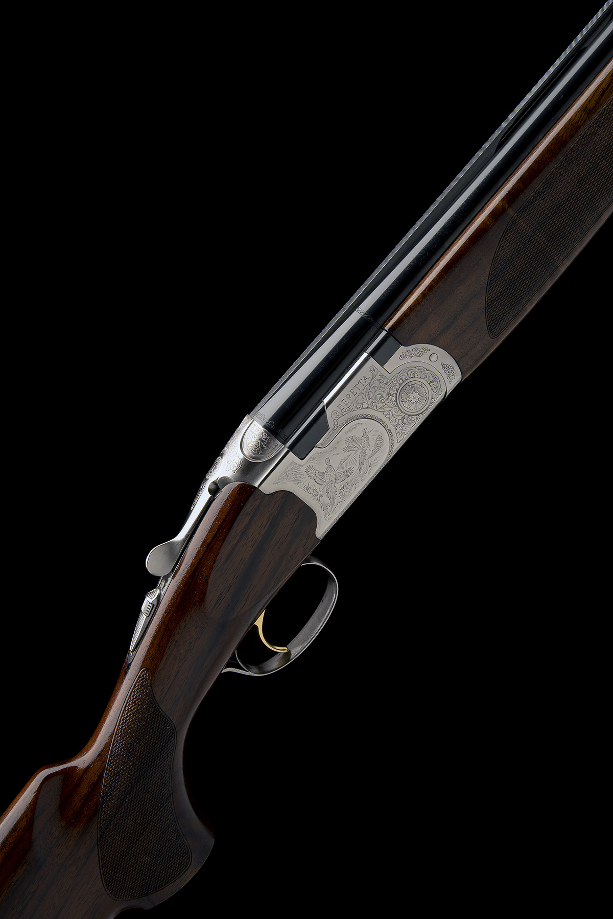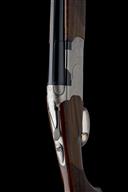 dated 2004, 28in. nitro barrels with 6mm ventilated matt top-rib, 3in. chambers, bored approx. 1/4 choke in both, hold-open toplever, automatic safety with integral barrel selector switch, gold-washed single trigger, foliate scroll engraving surrounding scenes of game, bright finish, 14 1/2in. pistolgrip stock including 1/2in. rubber recoil pad, weight 7lb. 2oz., in its makers universal case