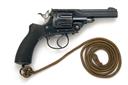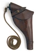 circa 1881, with blued octagonal 4 1/2in. barrel, the raised top-rib signed 'W. JEFFERY & SON, PLYMOUTH', blade fore-sight, standing notch rear-sight, break open blued frame marked 'W. TRANTER'S PATENTS', single hook-latch closure, fluted cylinder, double-action mechanism and finely chequered walnut one-piece grip (chequering rubbed), overall length of revolver 11 3/8in., complete with a period full-flap leather service holster and a World War One period woven lanyard