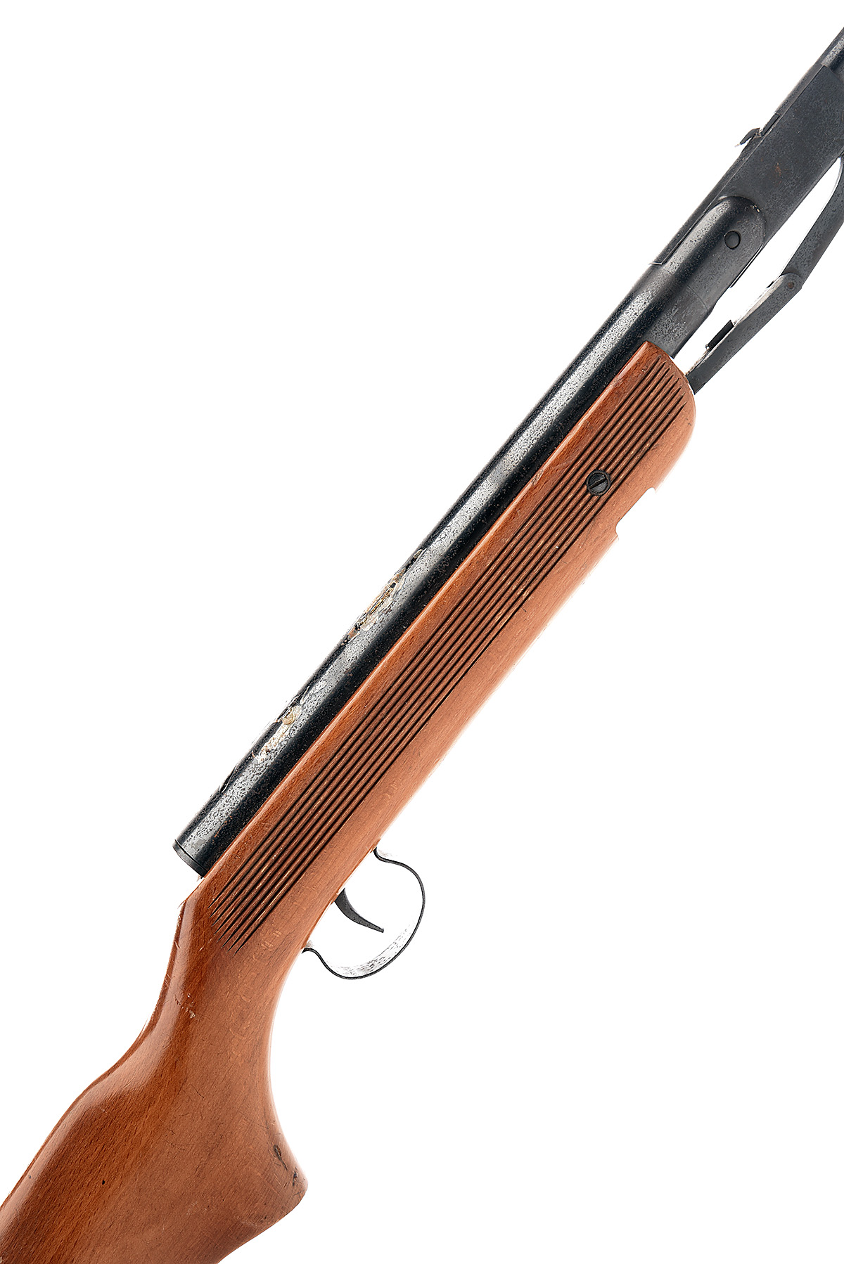 A .22 BREAK-BARREL AIR-RIFLE SIGNED RELUM, MODEL 'TELLY', serial no. 30221, circa 1964, with 19in. barrel, plain air-chamber and beech half-stock with grooved fore-end, 43in. overall