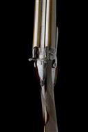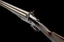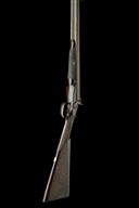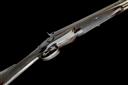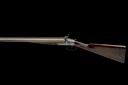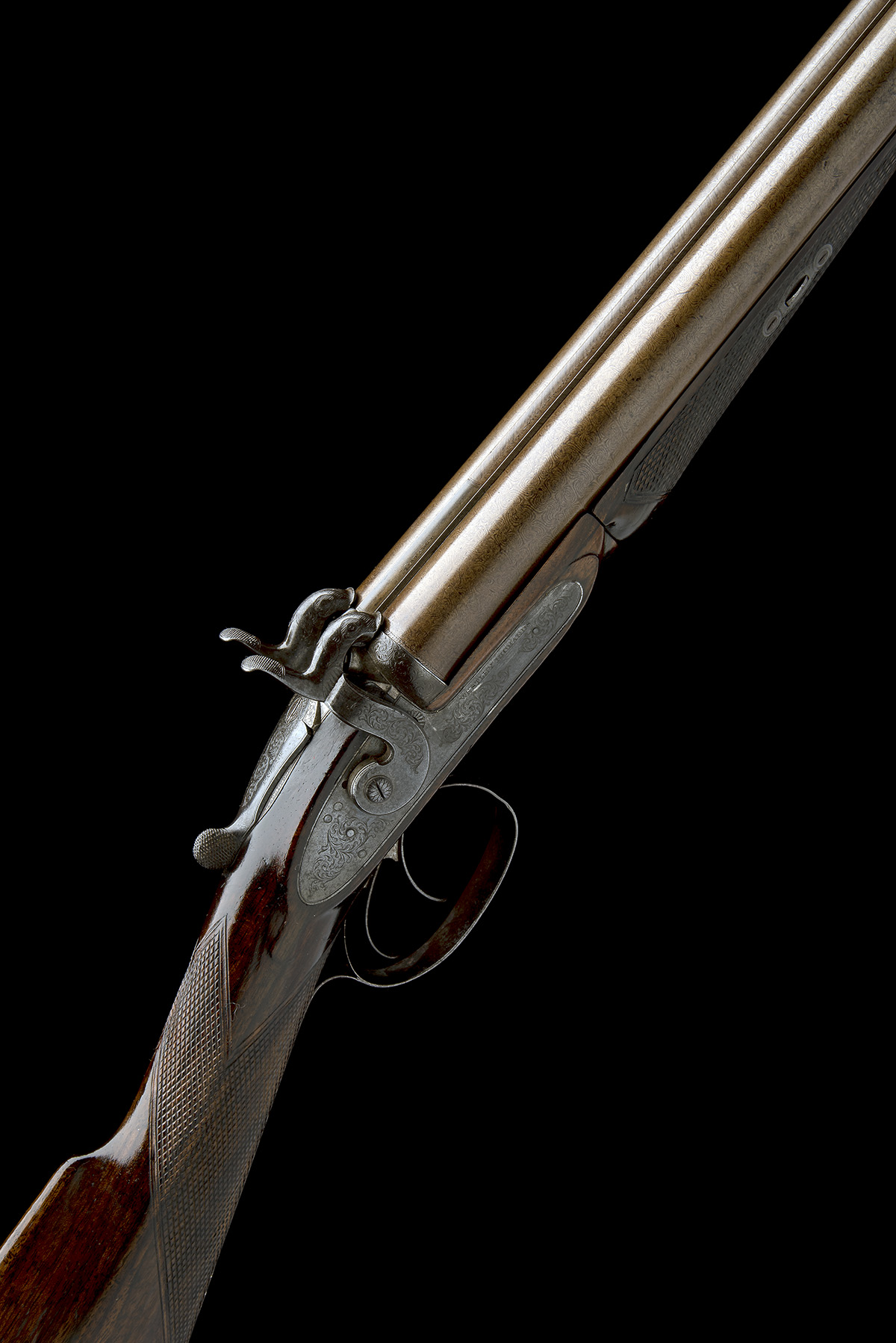 circa 1870, 30in. nitro reproved damascus barrels, the rib engraved 'PATENT. WESTLEY RICHARDS. 170 NEW BOND ST. LONDON.', 2 3/4in. chambers, bored approx. true cyl. in both, Westley Richards patent toplever, non-rebounding sidelocks with dolphin hammers of pinfire form, bar-in-wood, the fore-end meeting at the knuckle in a crab joint, border and partial scroll engraving, 14 1/2in. stock with 1/2in. wooden extension and steel buttplate, fore-end with crosspin release and sculpted horn finial, weight 7lb. 1oz.
