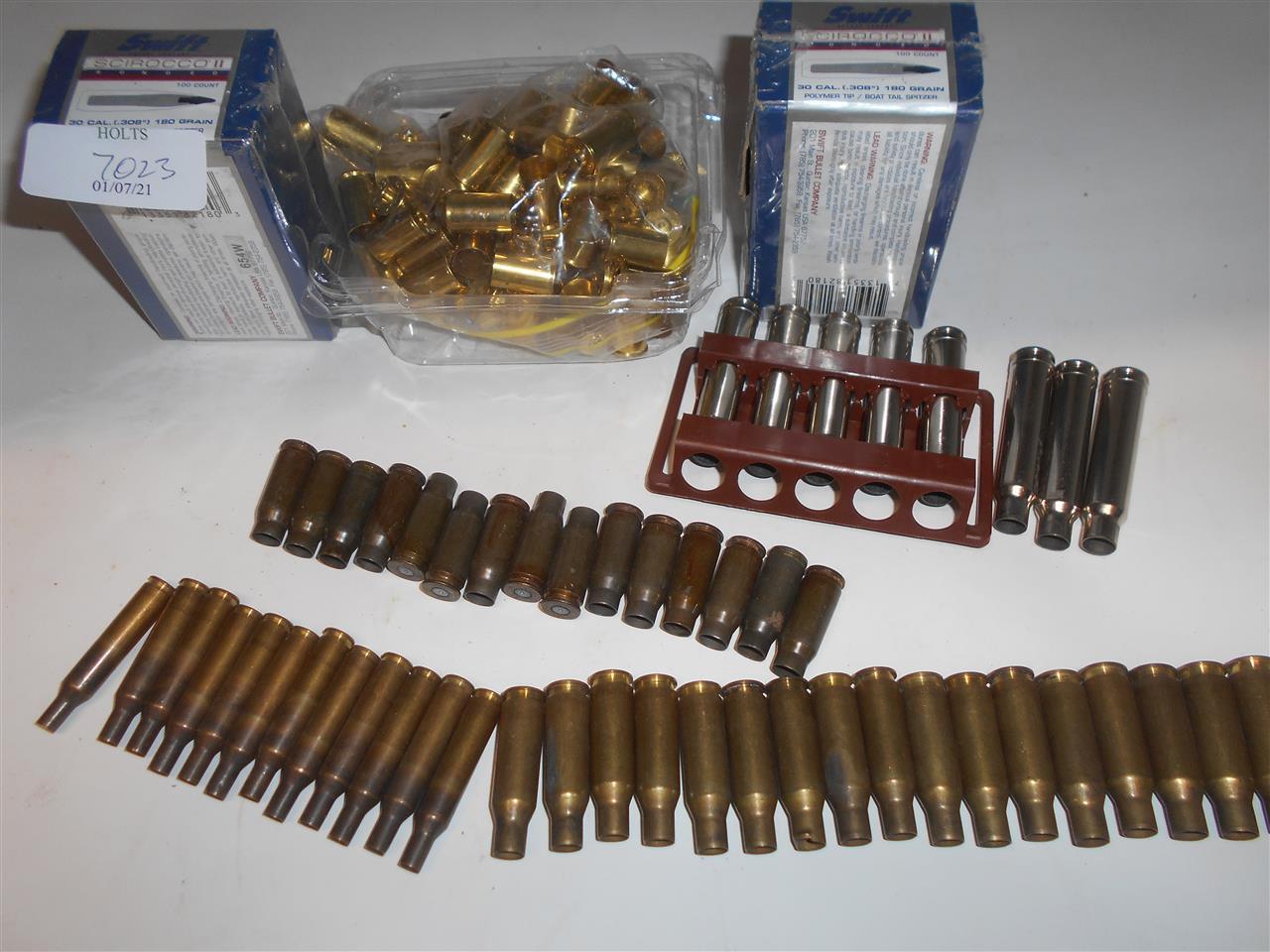 CASES & BULLETS FOR RELOADING, BULLETS .308, UNPRIMED CASES 7.62 KURTZ, RG 485, .280/30, .300 WIN MAG, .455