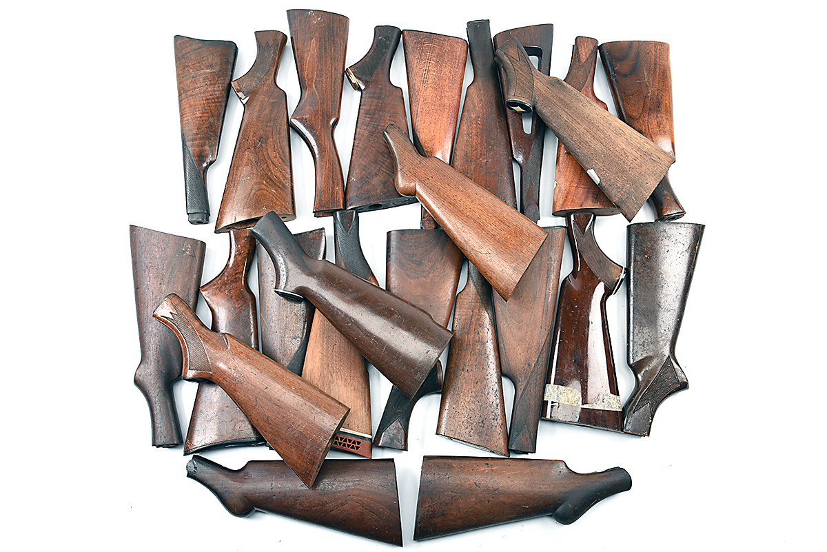 A COLLECTION OF 25 USED PUMP-ACTION & SEMI-AUTO STOCKS