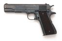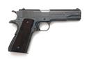 for first year of production,1929, with blued 5in. barrel, brushed bright chamber, blued slide signed by the maker and with patents to 1913, blued frame of 1911A1 type, chequered arched mainspring housing, grip-safe, spurred hammer and chequered walnut grips, complete with correct magazine, the whole in fine condition and apparently little used, overall length 9 3/4in.