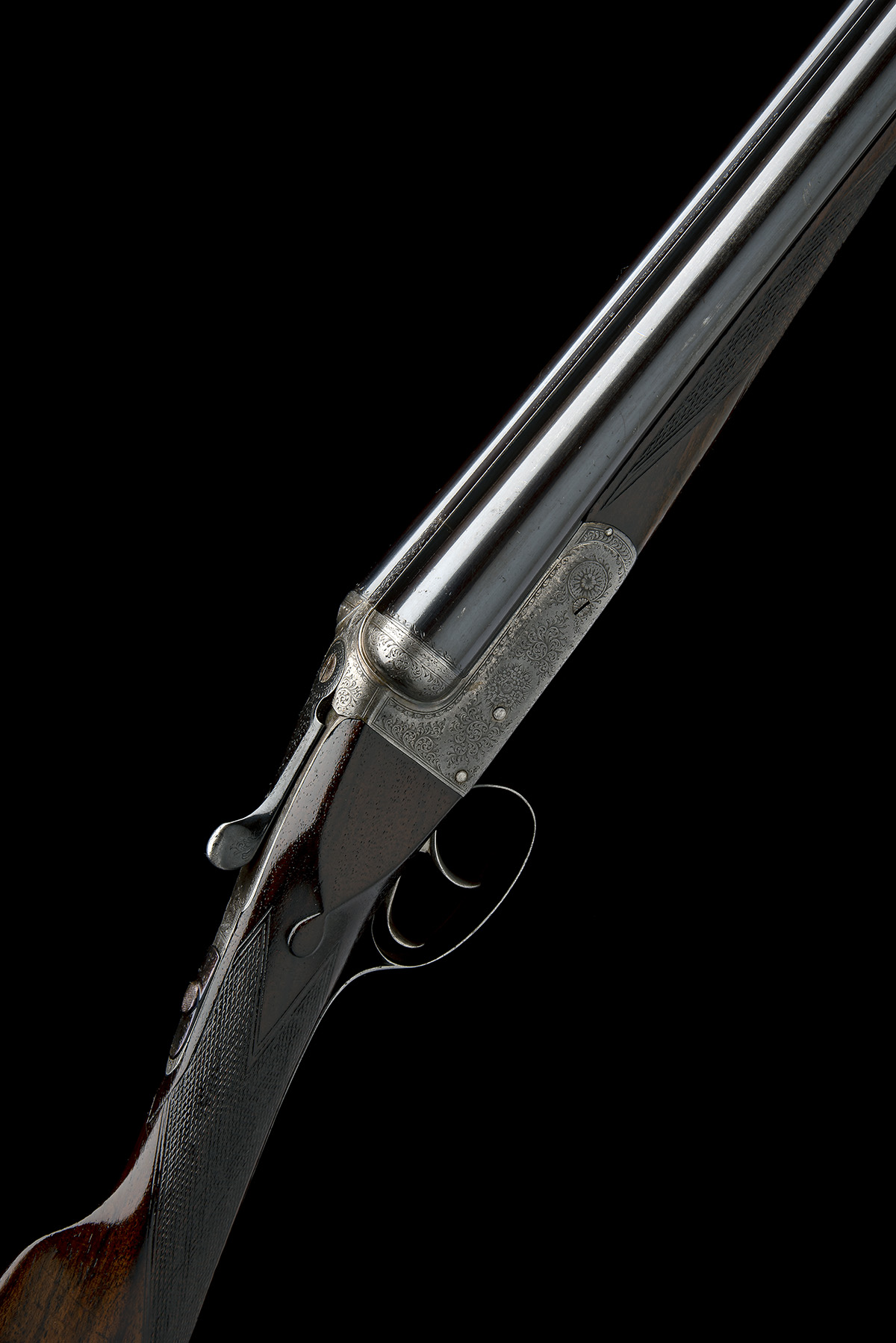 circa 1929, 25in. nitro barrels, the rib engraved 'JOHN WILKES. 79. BEAK STREET. REGENT STREET. LONDON. W.', 2 1/2in. chambers, bored approx. true cyl. and 1/2 choke, automatic safety, bouquet and scroll engraving, 13 3/8in. stock including 3/4in. rubber recoil pad, weight 5lb. 6oz.