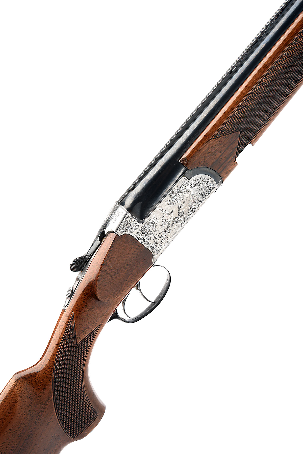 HILTON GUN CO. 12-BORE 'CENTURY' DOUBLE-TRIGGER OVER AND UNDER EJECTOR, serial no. 7282, dated 1978, 27 1/2in. nitro barrels with 6mm ventilated matt top-rib, 2 3/4in. chambers, bored approx. imp. cyl. and 3/4 choke, hold-open toplever, automatic safety, game and scroll engraving, bright finish, 14 3/4in. pistolgrip stock