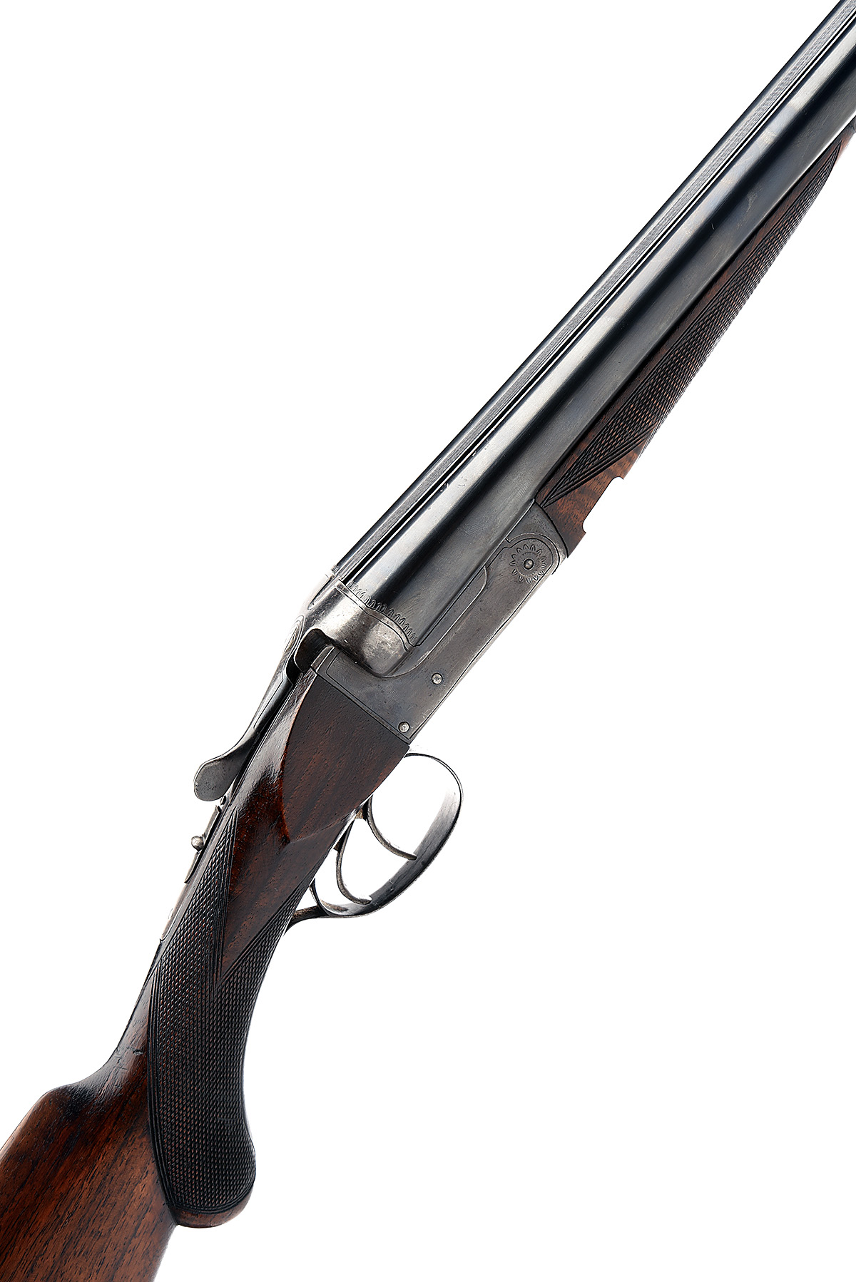 NEUMANN & CO. 12-BORE BOXLOCK NON-EJECTOR, serial no. 33924, dated 1943, 32in. nitro barrels, 2 3/4in. chambers, bored approx. 1/2 and 3/4 choke, bolstered treble-grip action with sideclips, manual safety, border engraving, 14 1/4in. semi-pistolgrip stock with cheekpiece, sling swivels, including buttplate