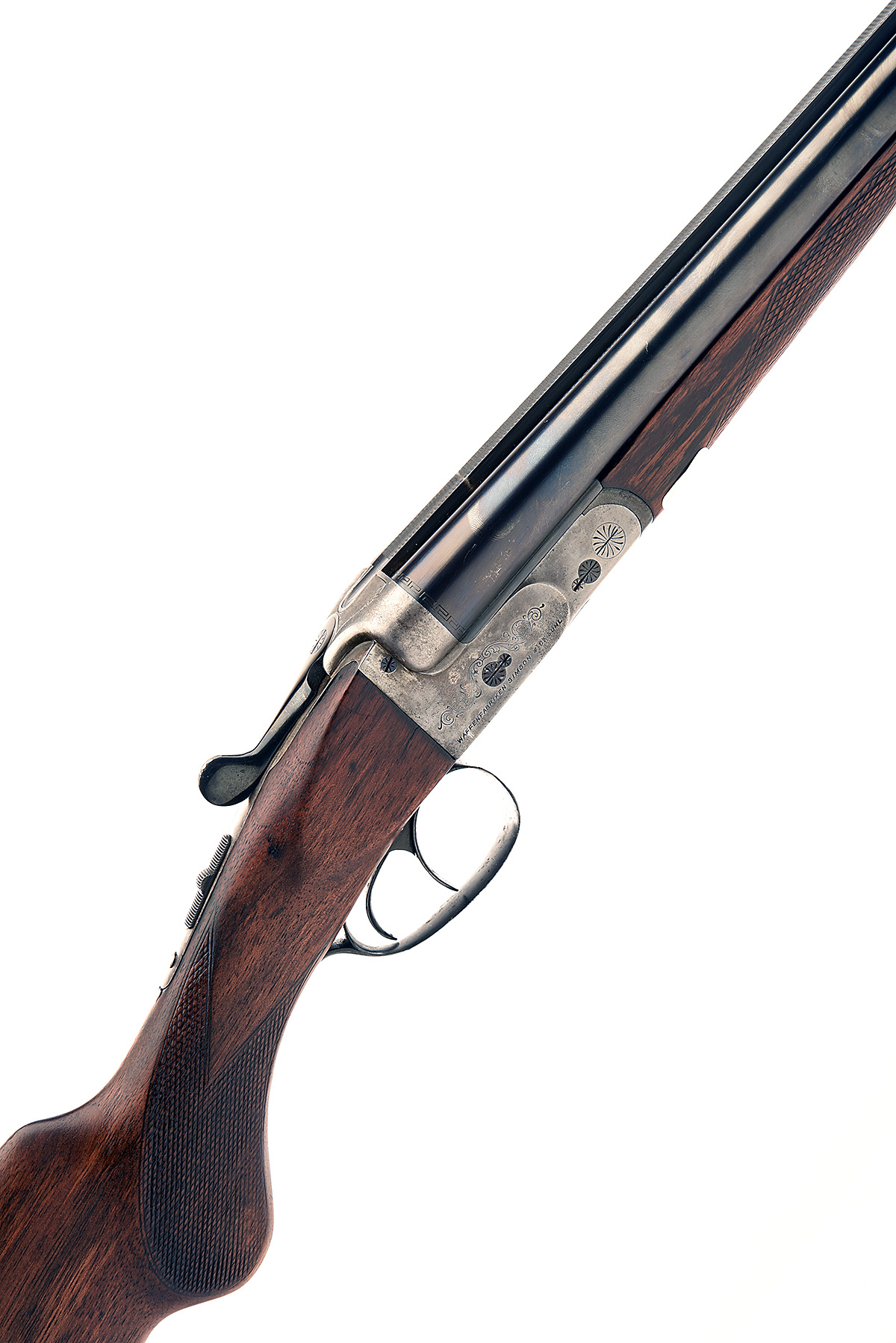WAFFENFABRIKEN SIMSON & CO. (SUHL) 16-BORE BOXLOCK NON-EJECTOR, serial no. 35135, likely circa 1930, 28 3/8in. nitro reproved barrels (in 1984), 2 1/2in. chambers, bored approx. 1/2 choke in both, treble-grip action, manual safety, partial scroll engraving, 15 1/2in. semi-pistolgrip stock (pinned at head) including 2 1/2in. wooden extension and ventilated rubber recoil pad