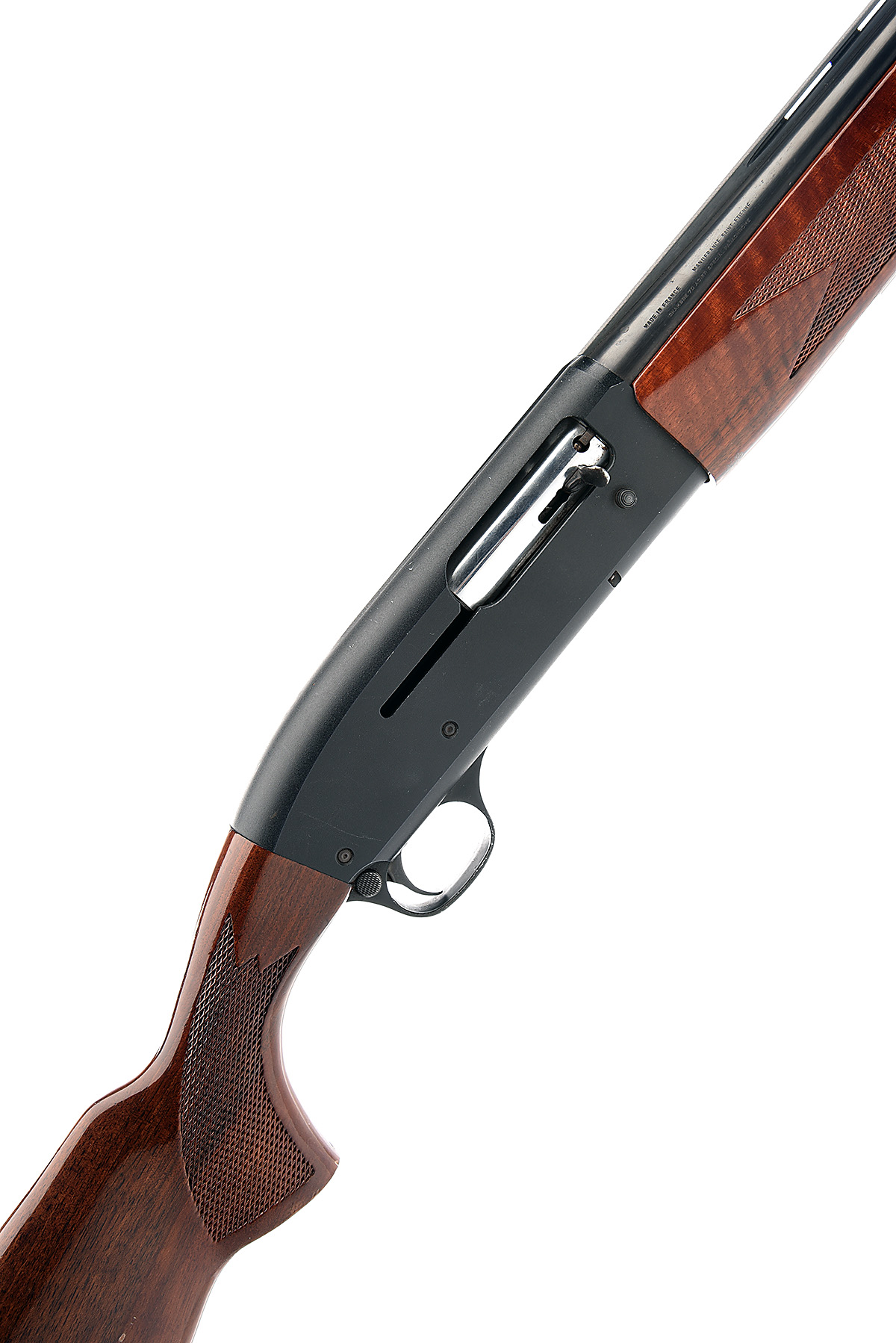 MANUFRANCE 12-BORE 'PERFEX' SEMI-AUTO SHOTGUN, serial no. 159338, circa 1970, restricted magazine, 28in. nitro barrel with 7mm ventilated matt rib, no. 177945, 2 3/4in. chamber, bored approx. full choke, manual push-button safety, magazine cut-off switch, plain blacked action, 13 3/4in. pistolgrip stock including trademark buttplate, sling swivels, weight 6lb. 14oz.