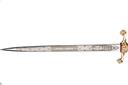 manufactured in 1972, with 10 3/4in. stiletto blade, oned side etched with scrolls and arabesques surrounding a panel marked '1772-1972', maker's details etched at forte, cast gilded cross-guard with drum quillions, smooth polished ivorine grip and gilded tear-drop pommel, in its fitted wood case lined in burgundy velvet, the outer lid bearing a plaque marked 'PRESENTED TO E.R. CHILTON BY WILKINSON SWORD LTD ON THE OCCASION OF THE COMPANY'S BI-CENTENARY 1972', complete with its black leather scabbard with gilt fittings.