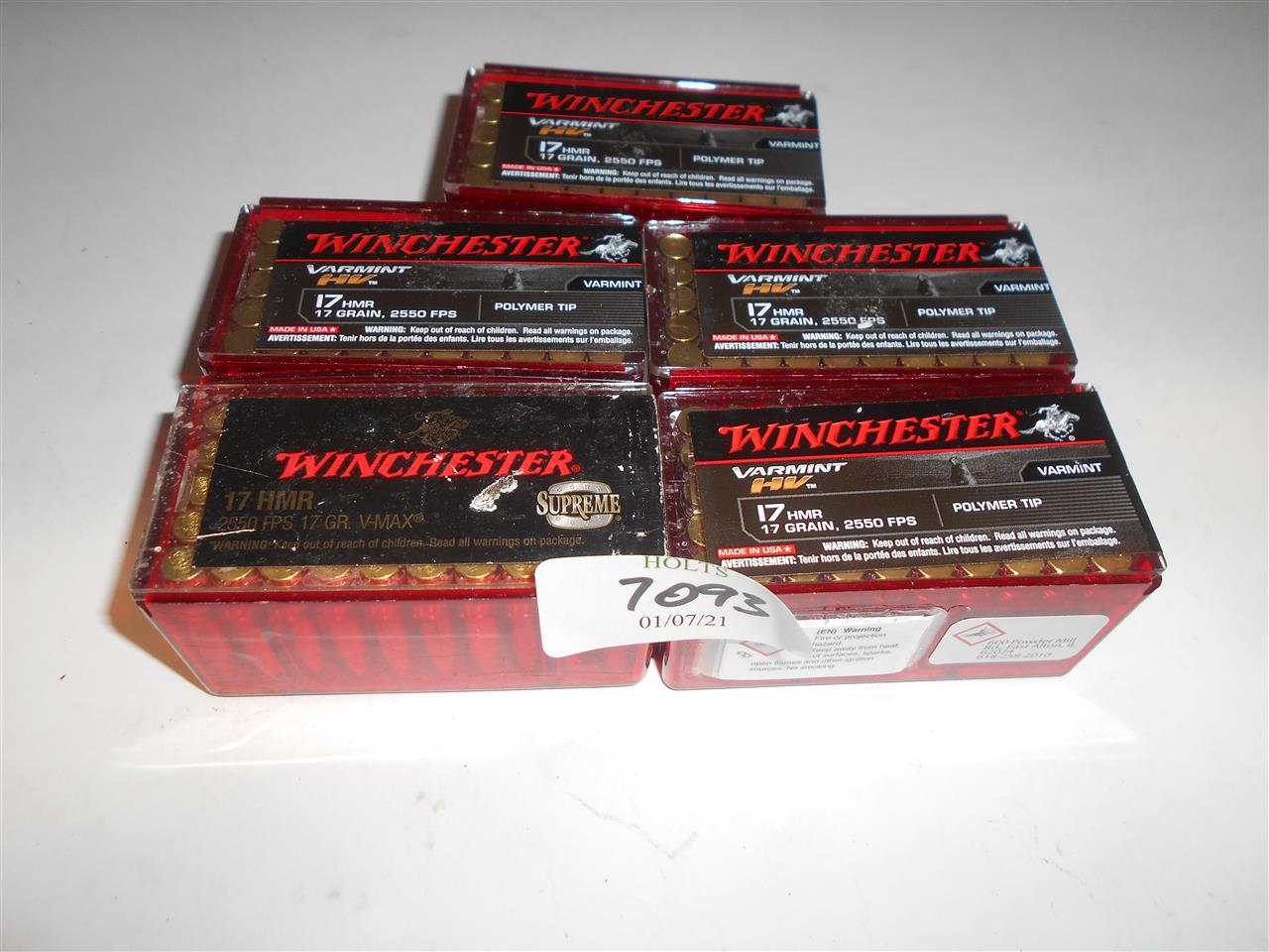 250 ROUNDS .17 HMR AMMUNITION BY WINCHESTER 17 Grn 2550 fps. Please be advised that cartridges/ammunition, primers, primed cases, blanks and percussion caps cannot be sent to you by post or carrier. If you wish you can book a collection at one of our regional valuation days or collect from our offices at PE31 6HA in Norfolk