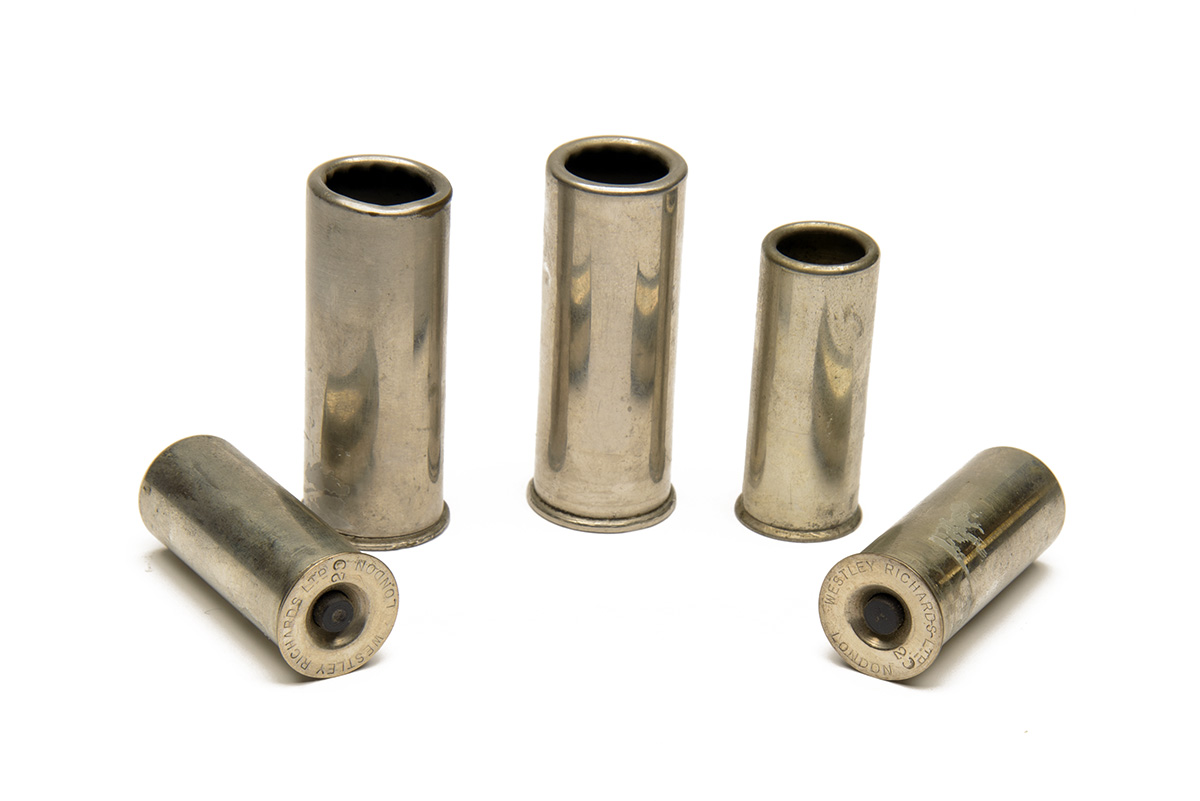 A COLLECTION OF FIVE SNAP-CAPS, comprising of 3 x 20-bore Westley Richards snap-caps, a pair of 12-bore Rigby snap-caps