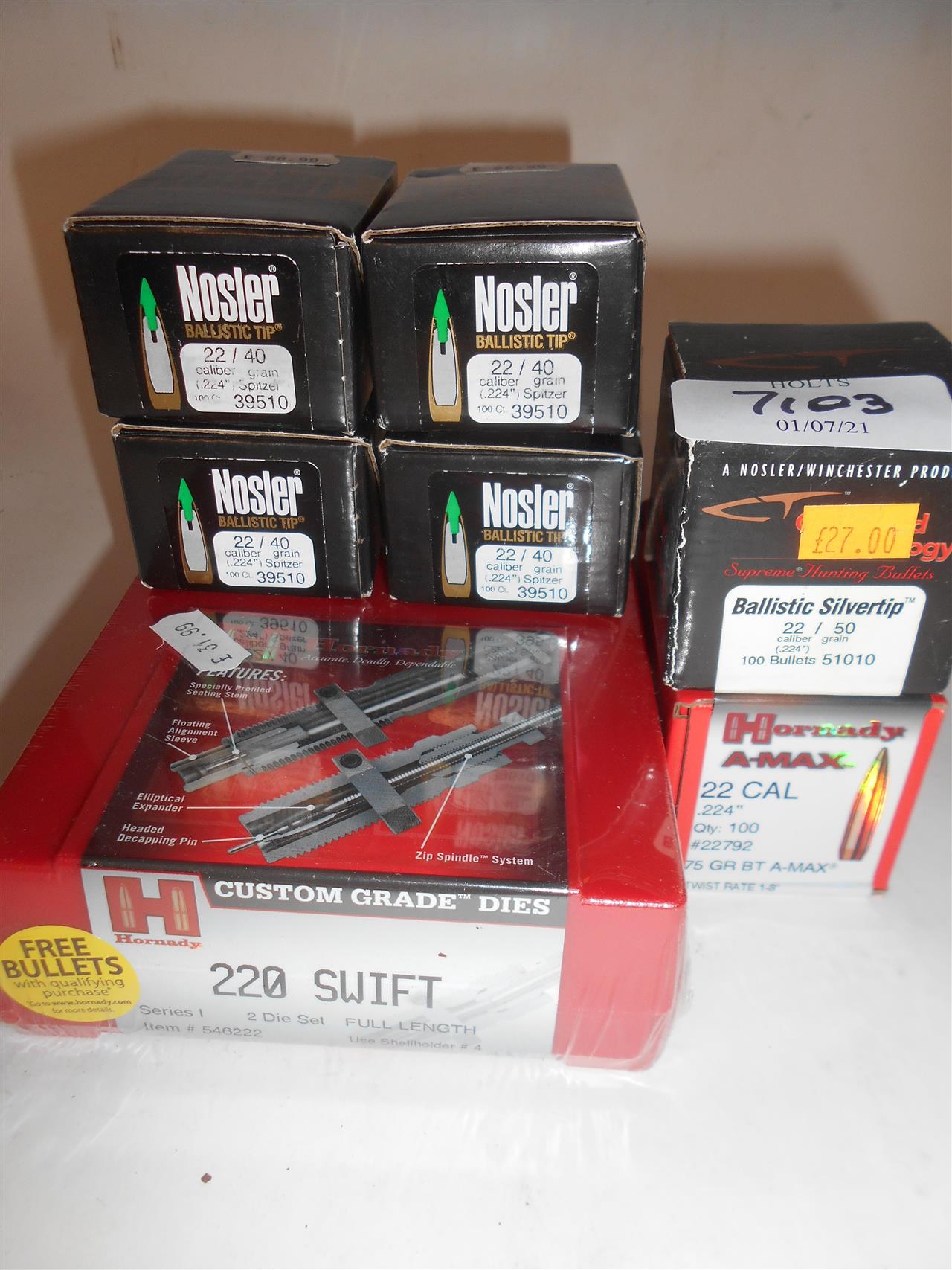HORNADY .220 SWIFT DIE SET WITH 600 .22 BULLETS, comprising of: