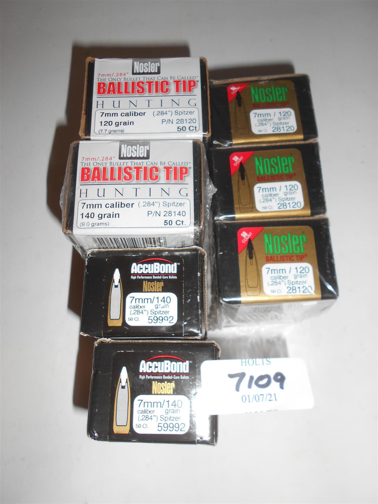 APPROXIMATELY 700 NOSLER 7mm BULLETS (.284) FOR RELOADING, comprising of: