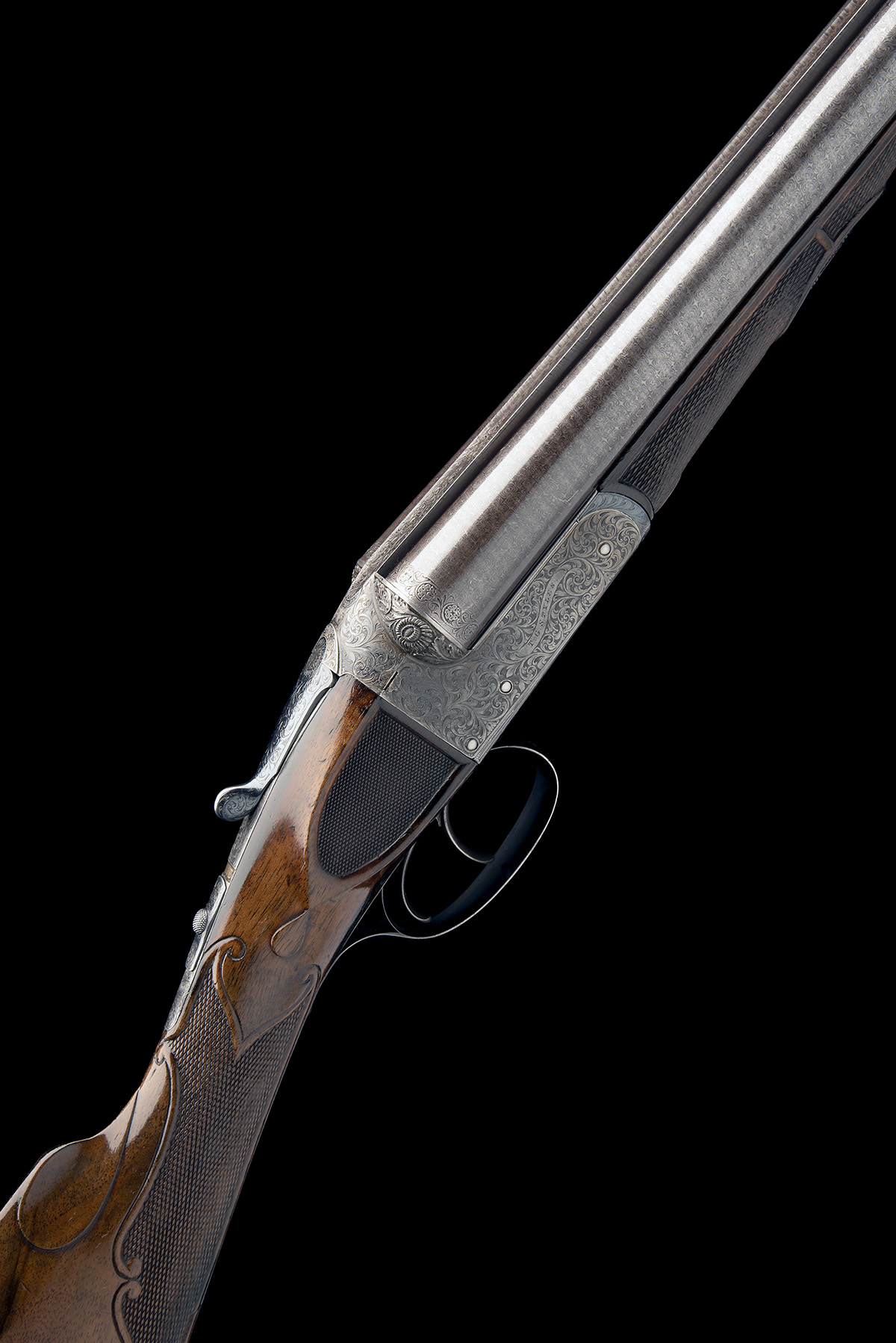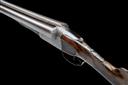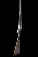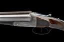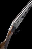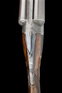 serial number on under rib only, circa 1886/7, 30in. nitro reproved fine damascus barrels (in 2007), the rib engraved 'THOMAS G. STYLES. MAKER. KIDDERMINSTER' and with deeply carved acanthus detailing at the breech end, the tubes with intricately engraved bands of floral and foliate designs at the breech ends, 2 3/4in. chambers, bored approx. full and 3/4 choke, left wall thickness at 19+, W. Anson and J. Deeley patent treble-grip action incorporating improved design of 11th April 1883 of specification no. 1756 A.D.1875 patent, with Westley Richards style toplever, automatic safety with gold-inlaid 'SAFE' detail, intercepting sears, bold acanthus scroll engraving with scrolling banners to the sides inscribed 'T.G. STYLES', the underside with an oval vignette of a pointer on point, the triggerguard with bolting rabbits, the fences finely carved in high relief with sunflower blooms, retaining traces of original colour-hardening and some renewed finish, 14in. well-figured stock carved at the head with recessed chequered side panels, the hand carved with ornate bordering and recessed chequered panels and with fluted comb detail, the middle of the butt with carved oval borders inset with bunch weave carved designs and including herringbone carved horn buttplate, the fore-end decorated en suite (minor losses at knuckle) with Anson push rod release and ornate steel finial, weight 6lb. 10oz.