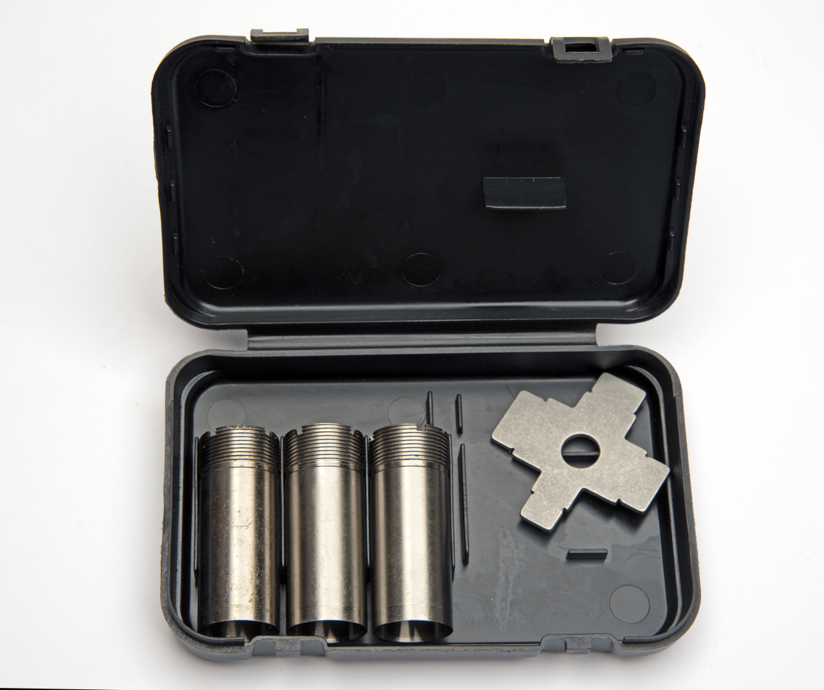 A SET OF THREE CASED KOFFS SHOTGUN CHOKES WITH KEY