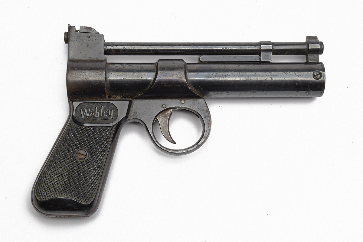 A .177 BARREL-COCKING AIR PISTOL SIGNED WEBLEY, MODEL JUNIOR serial no. 1025,