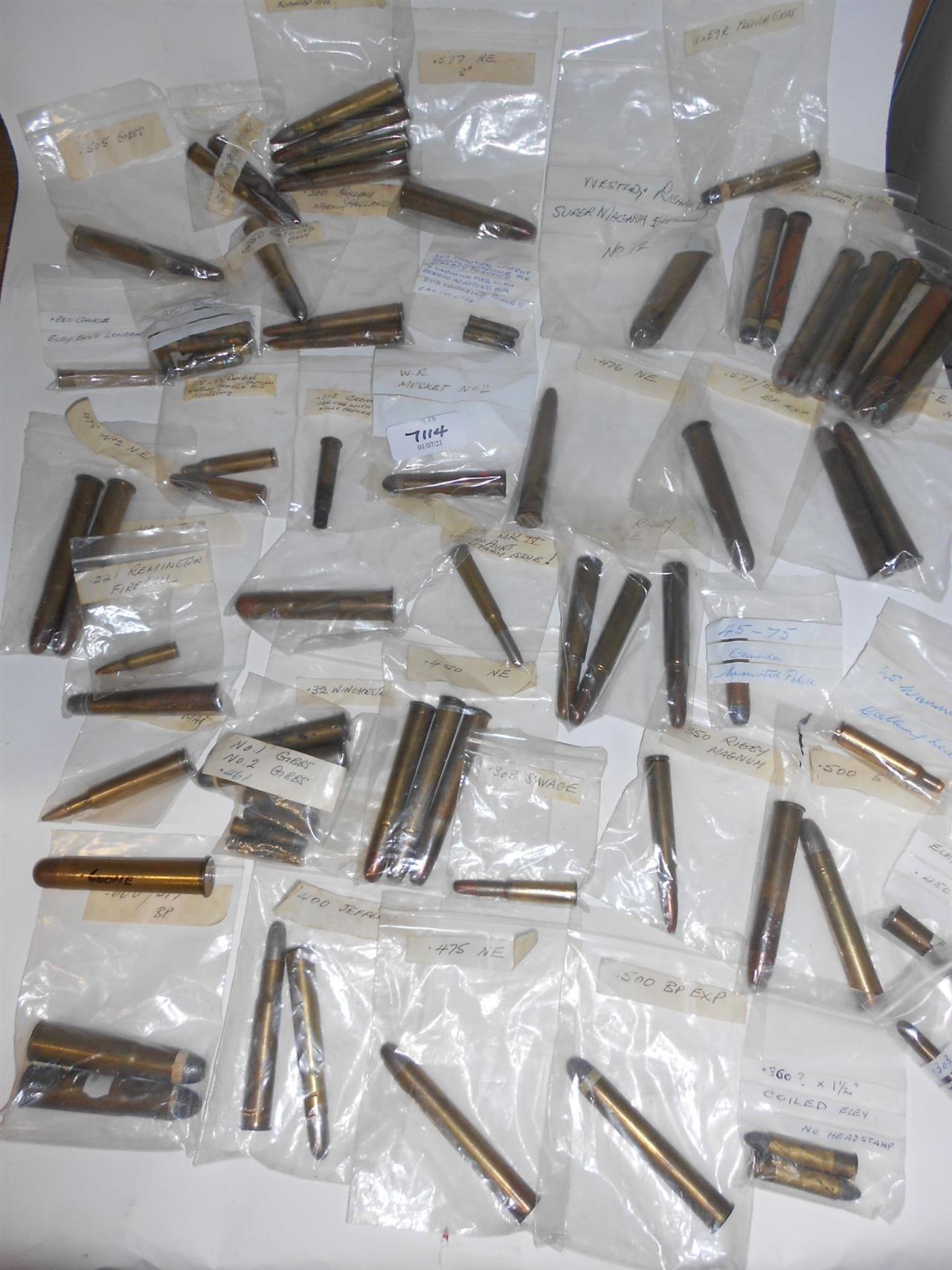 79 HIGHLY COLLECTABLE ROUNDS OF BIG GAME AND MILITARY AMMUNITION, comprising of the following cartridges using the collectors descriptions: