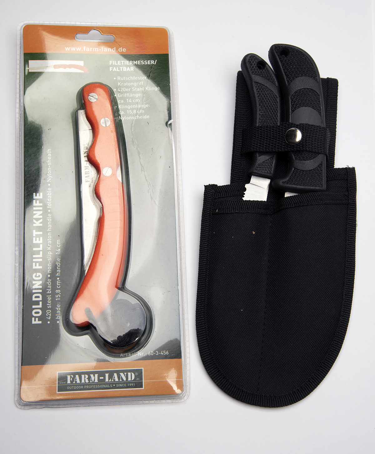 A SET OF TWO STALKER SKINNING KNIVES WITH A FOLDING FILLET KNIFE, both unused