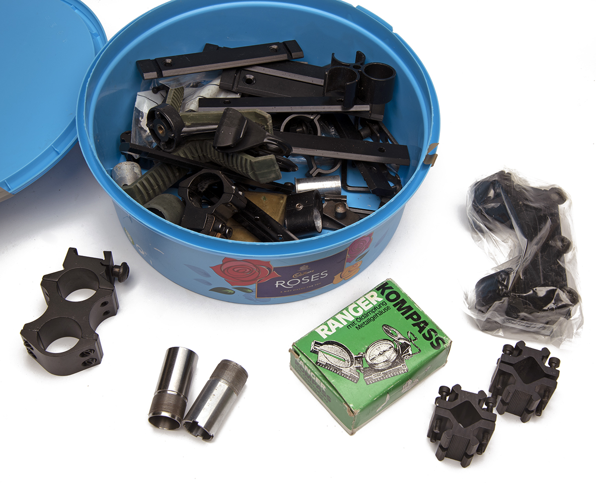 A COLLECTION OF PICATINNY SCOPE RAILS AND SCOPE RINGS